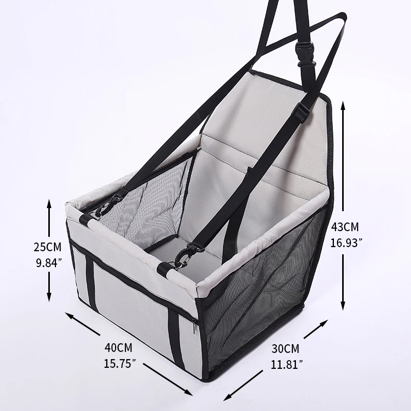 Material: 600 D Oxford PVC Color: as shown Size: 40 x 30 x 25 cm Conversion: 1 inch=2.54 cm Package Included: 1 X Pet Dog Car Seat Carrier Bag