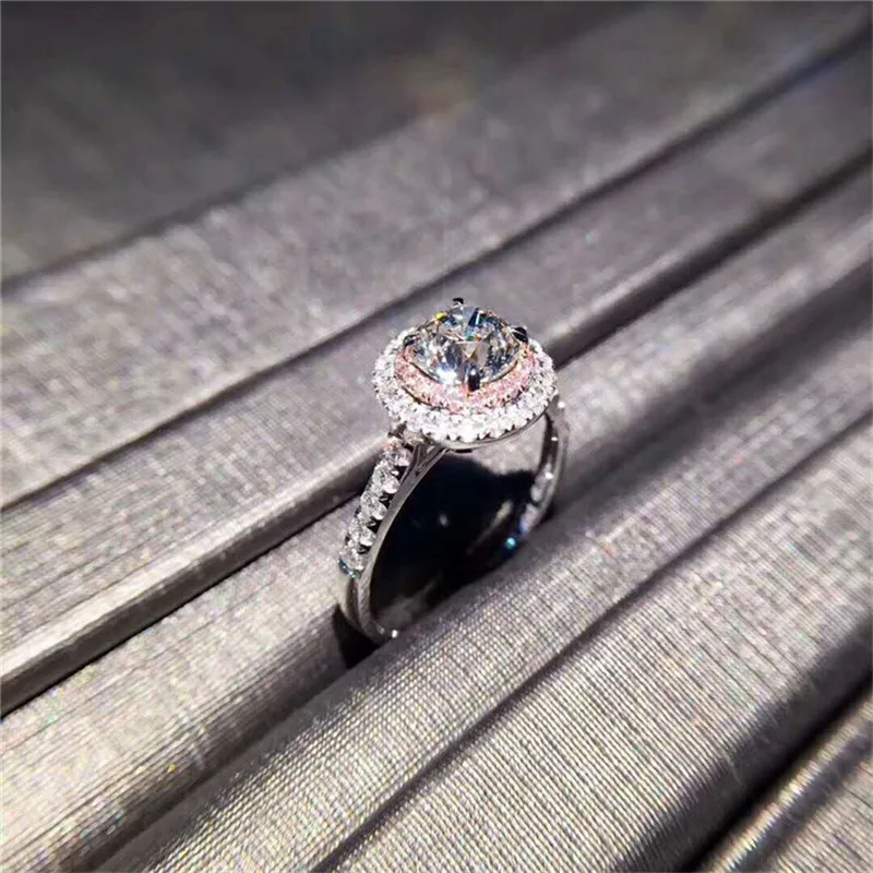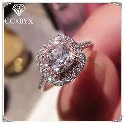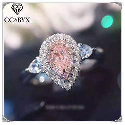 CC S925 Silver Wedding Rings For Women Charms Queen Princess Ring Round Pink Stone Bridal Engagement Jewelry Drop Shipping CC593