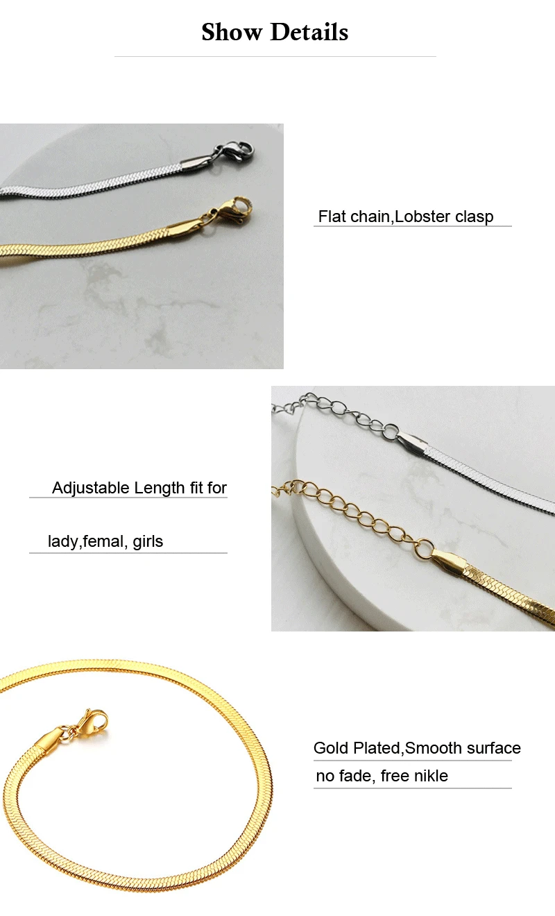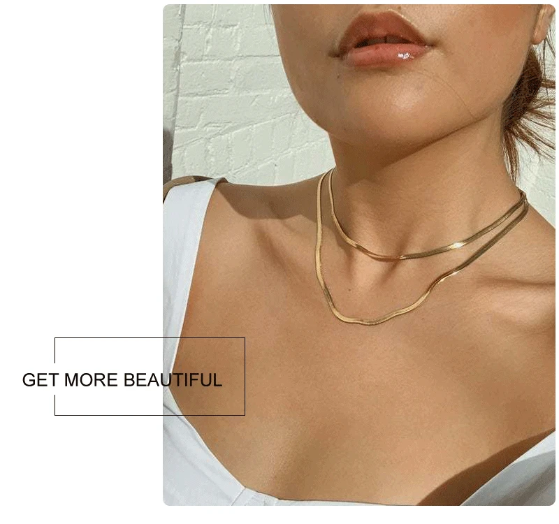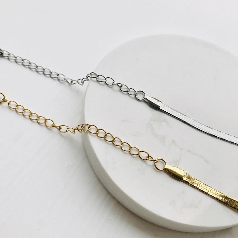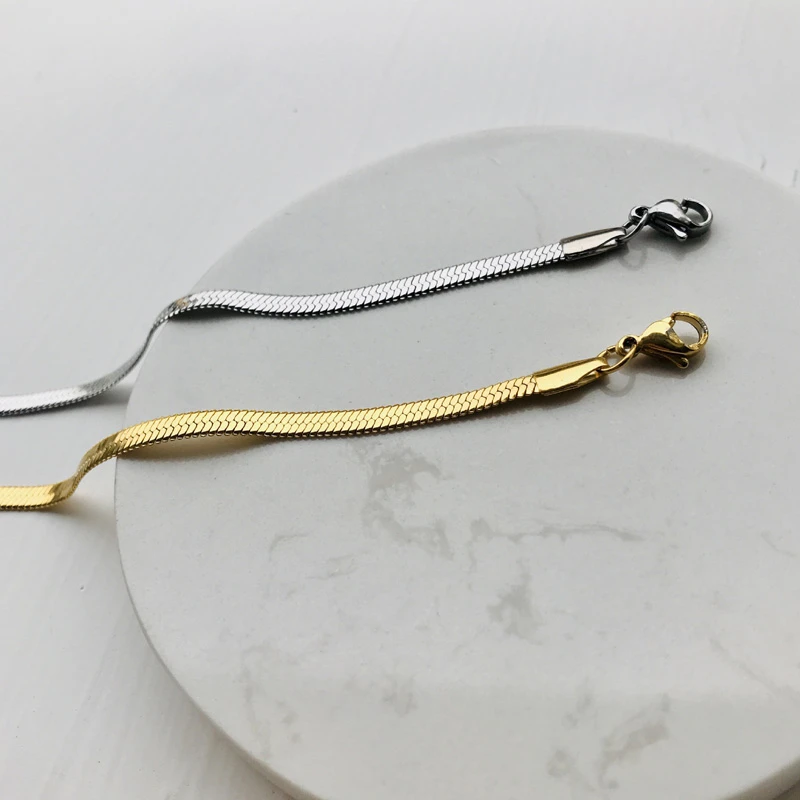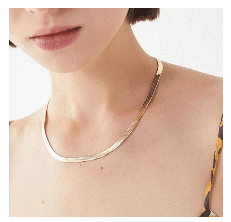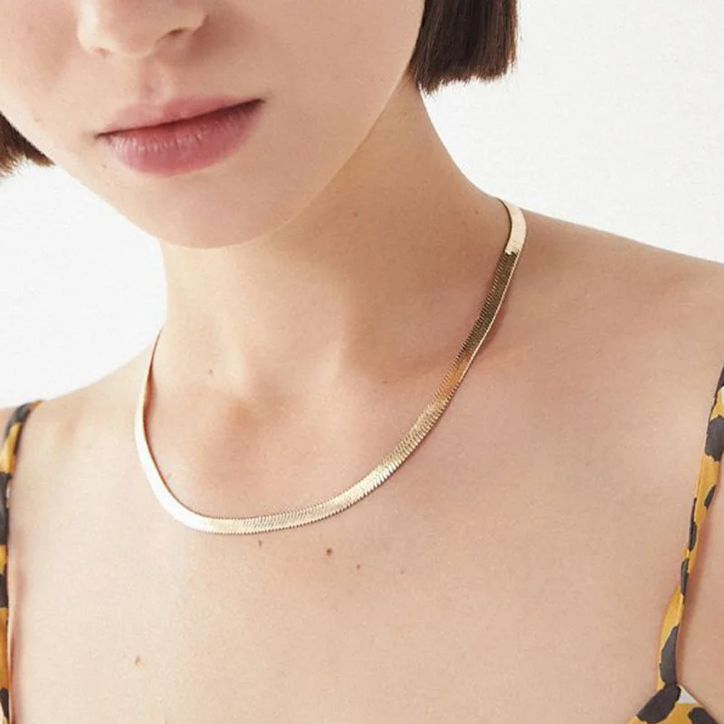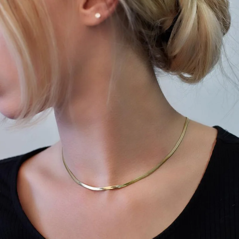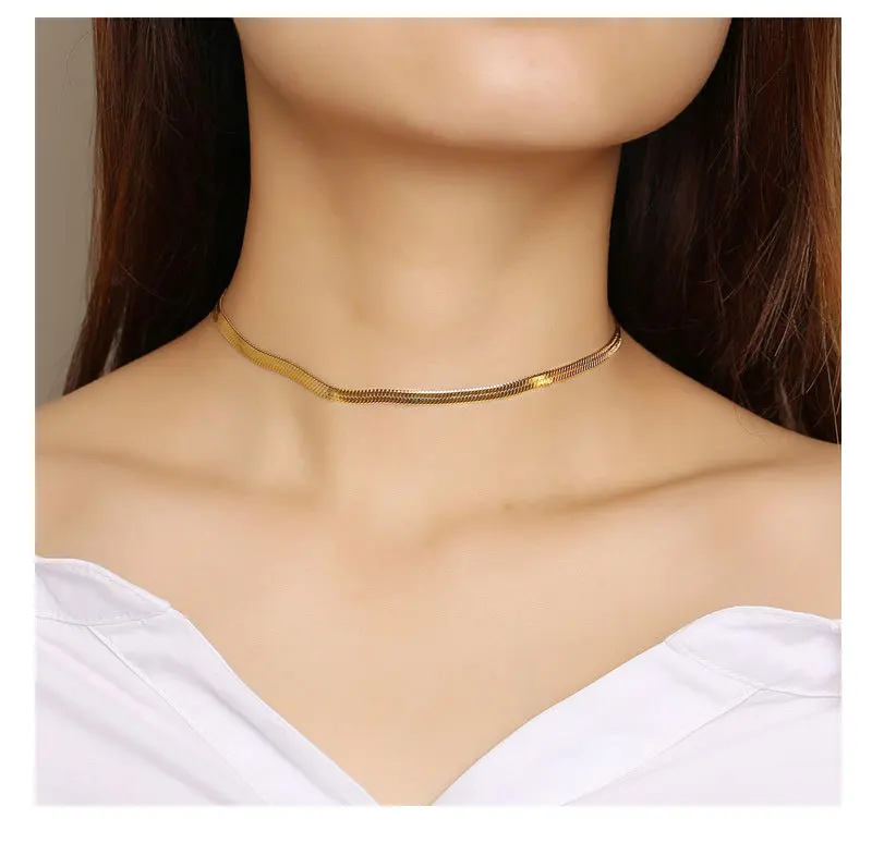 Charm Women Snake Chain Choker Necklace Stainless Steel Gold Silve Color Flat Herringbone Chokers Link for Girls 4mm