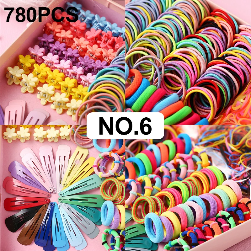 Children Colorful Nylon Elastic Hair Bands For Baby Girls Rubber Bands Set Kids 780Pcs Ponytail Holder Headband Hair Accessories