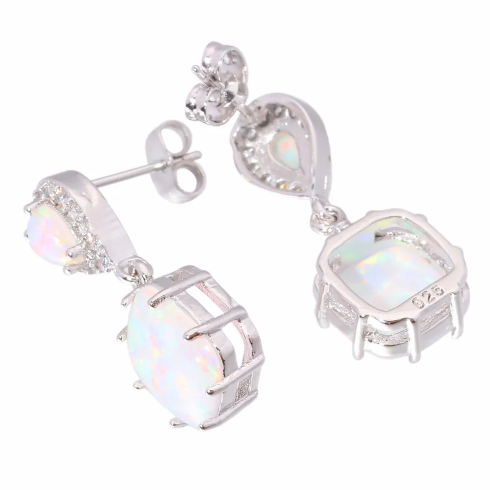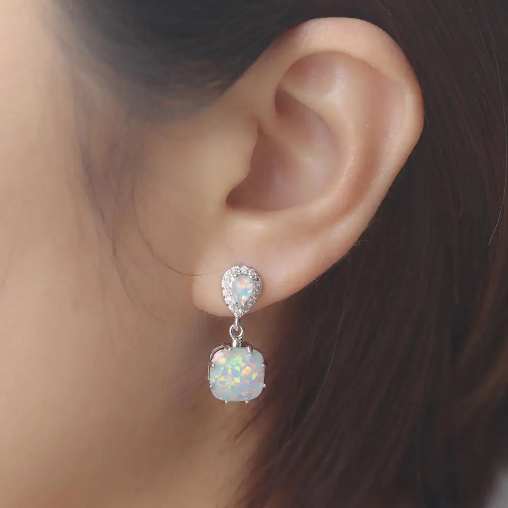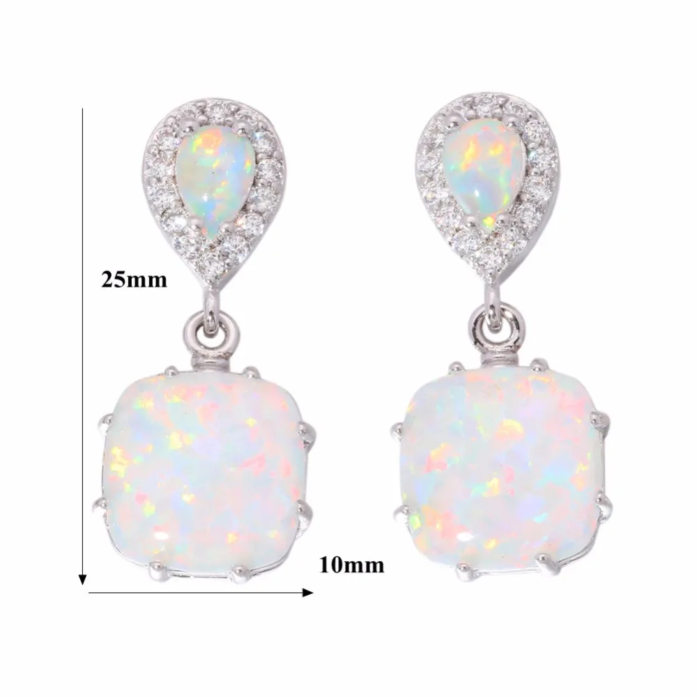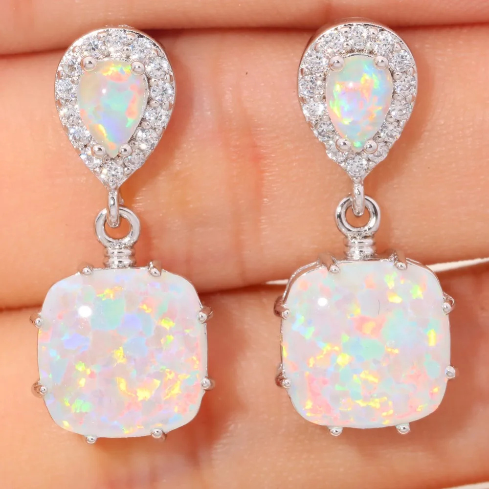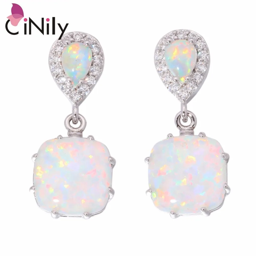 CiNily Created White Fire Opal Cubic Zirconia Silver Plated Earrings Wholesale Fashion for Women Jewelry Stud Earrings 1″ OH3513