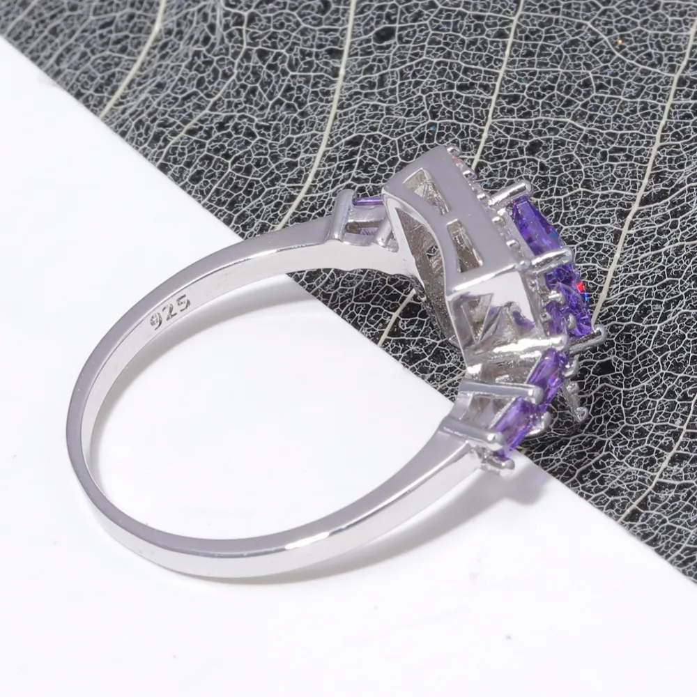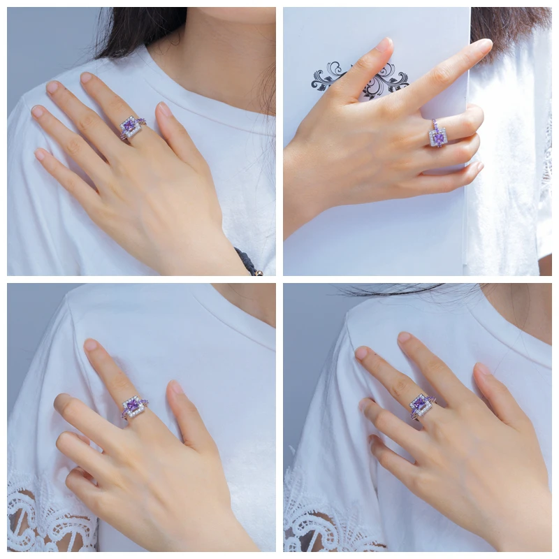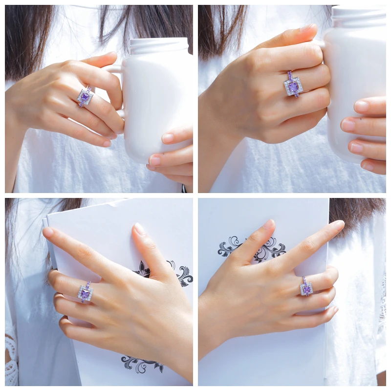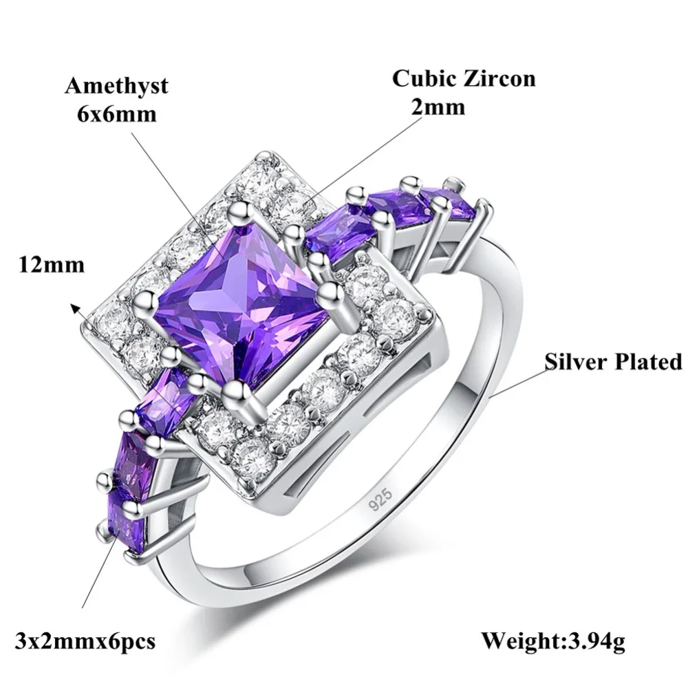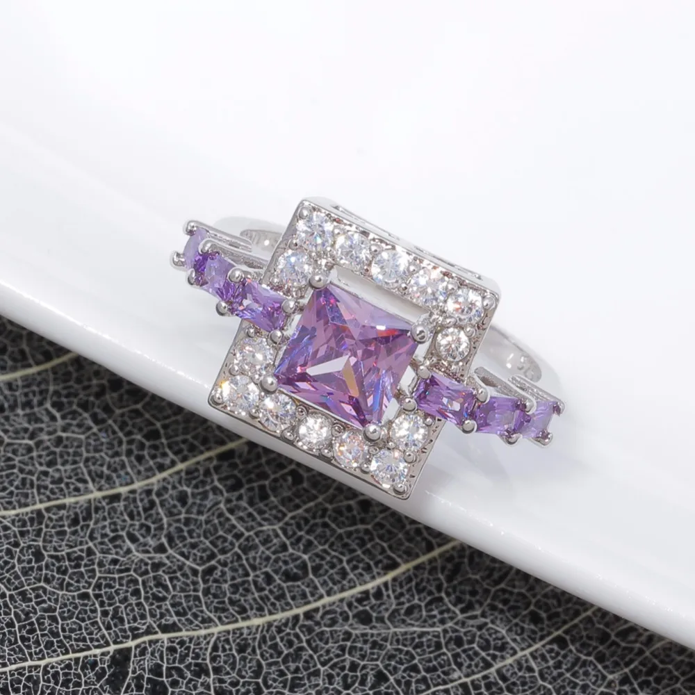 CiNily Silver Plated Princess Cut Purple Zircon Square Shape for Wholesale Women Jewelry Engagement Gift Ring Size 6-10 NJ11056