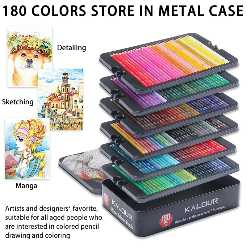 Durable carrying case: 100% safe and non-toxic. All kinds of colored pencils are placed in a beautiful iron box, and the plastic built-in tray keeps the pencils in order and protected.