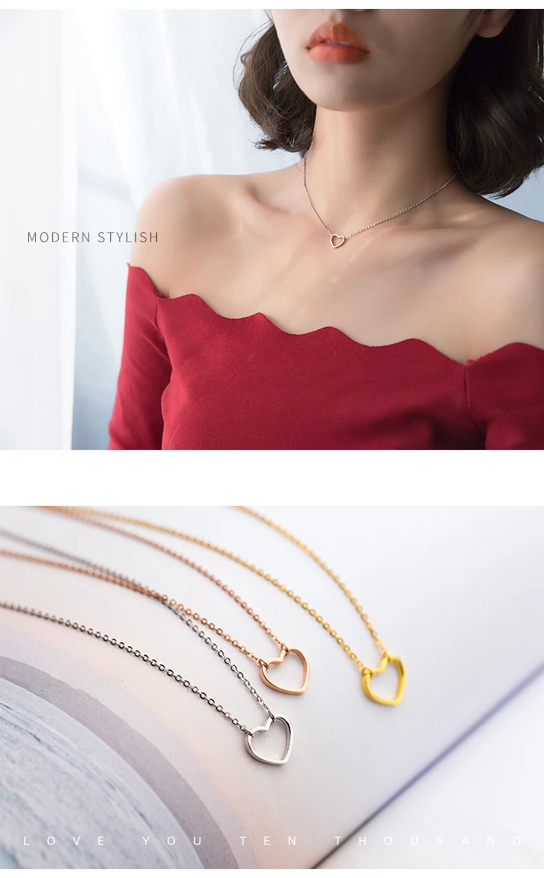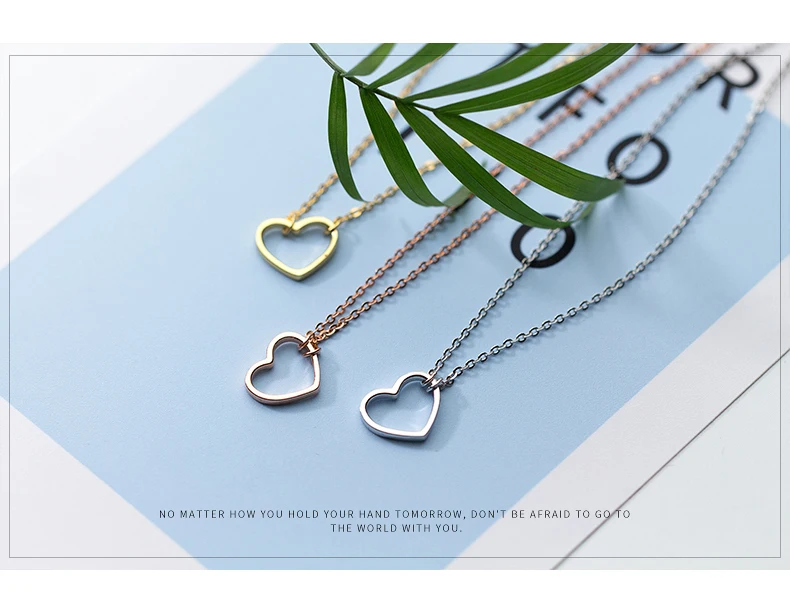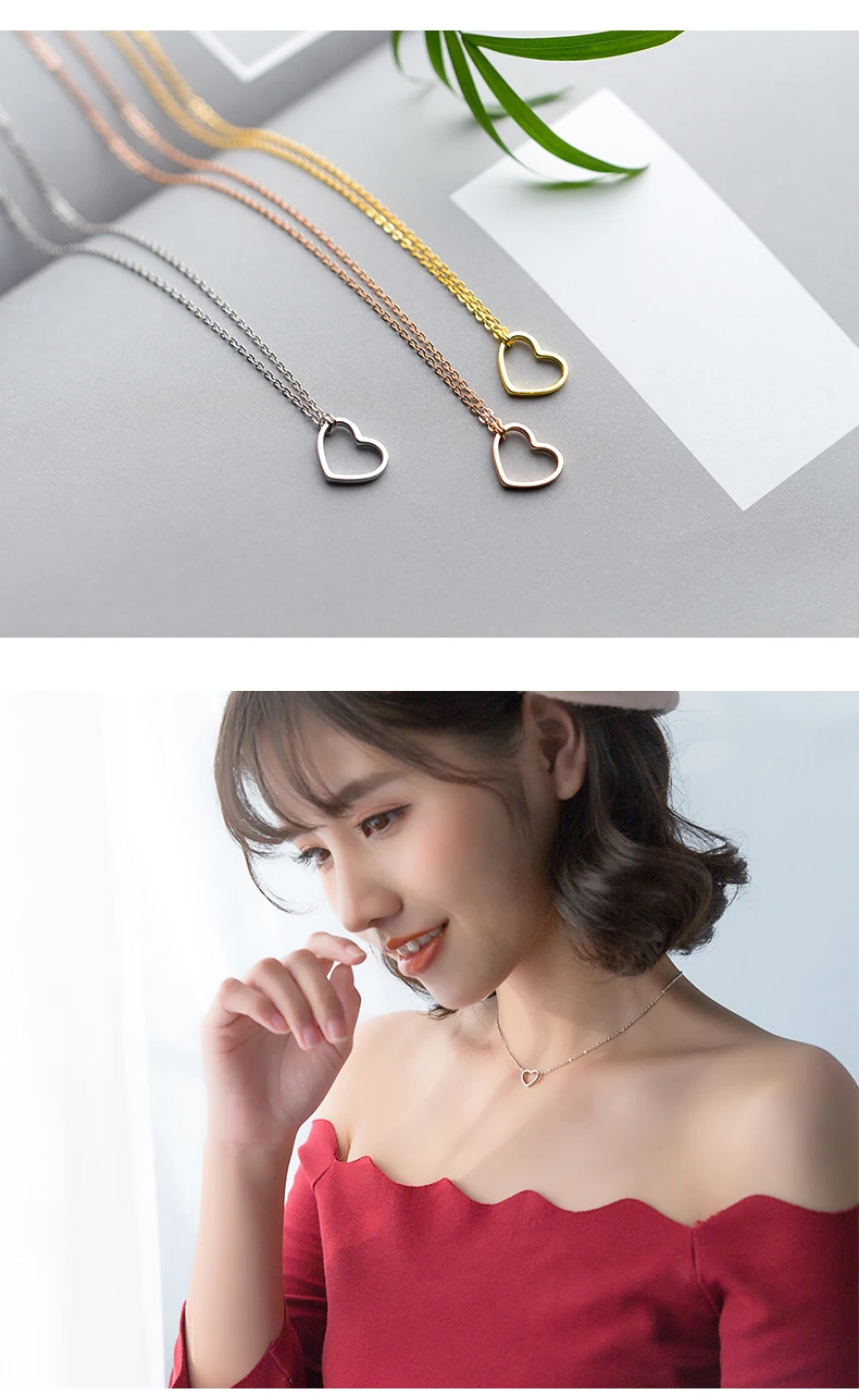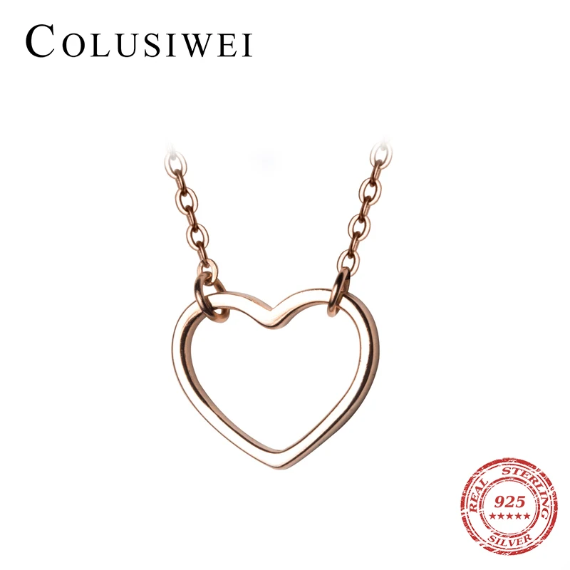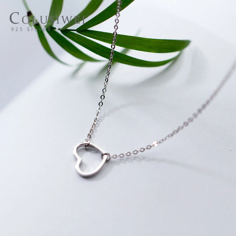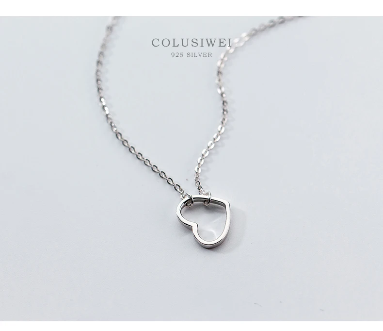 Colusiwei Genuine 925 Sterling Silver Simple Minimalist 3 Color Heart Choker Pendant Necklace for Women Chain Link Jewelry Gifts
