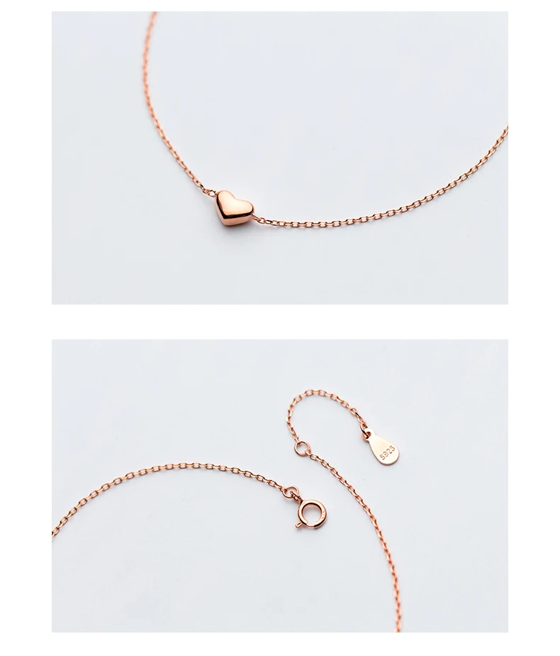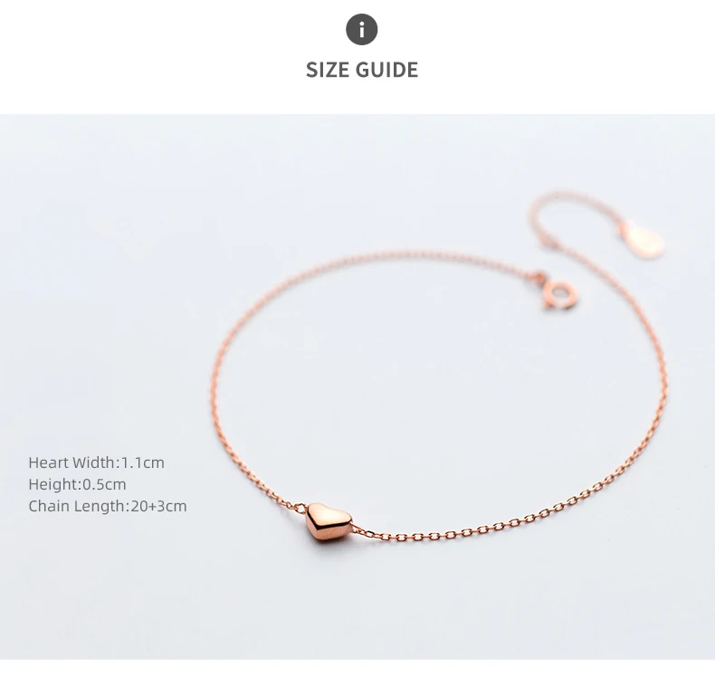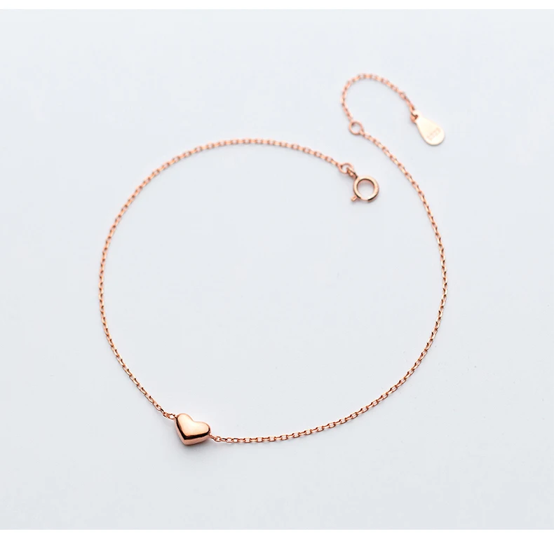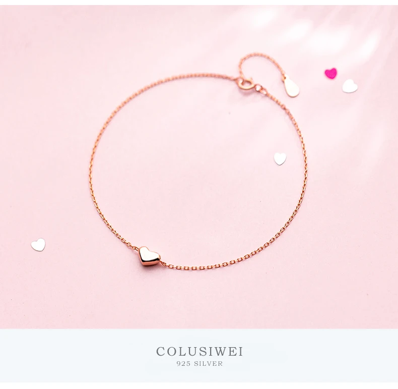 Colusiwei Silver Heart Anklets 925 Sterling Silver Rose Gold Color Minimalist Summer Fashion Foot Jewelry Bracelet for Ankle