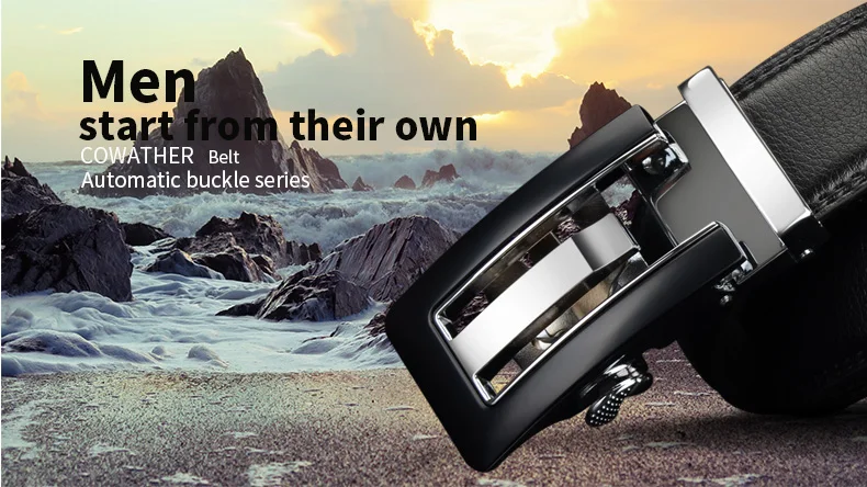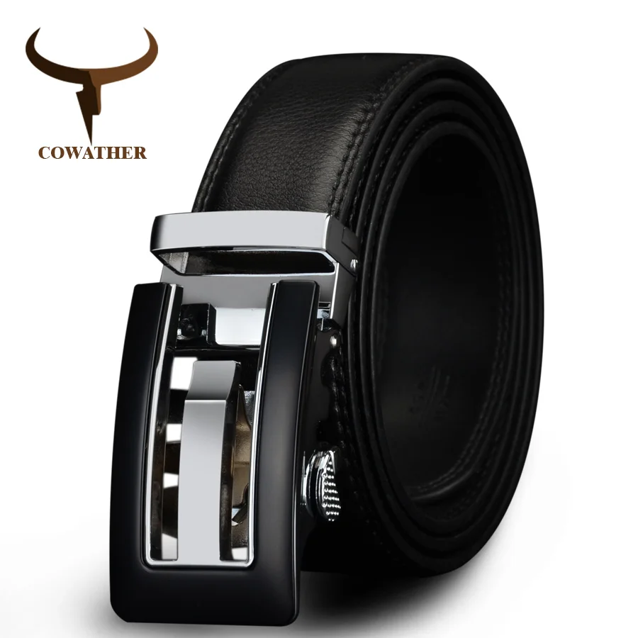 COWATHER 2017 Genuine Leather belts for men High quality brown black color metal automatic buckle Strap male Jeans cowboy CZ045