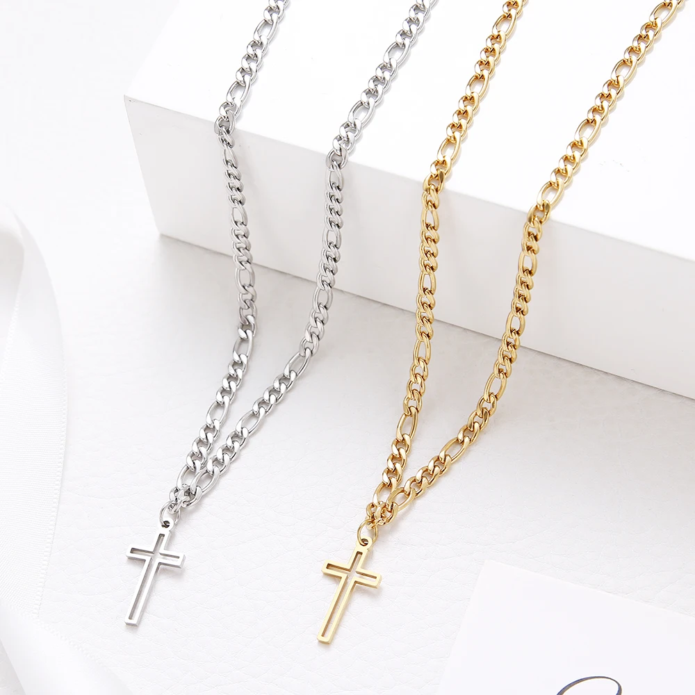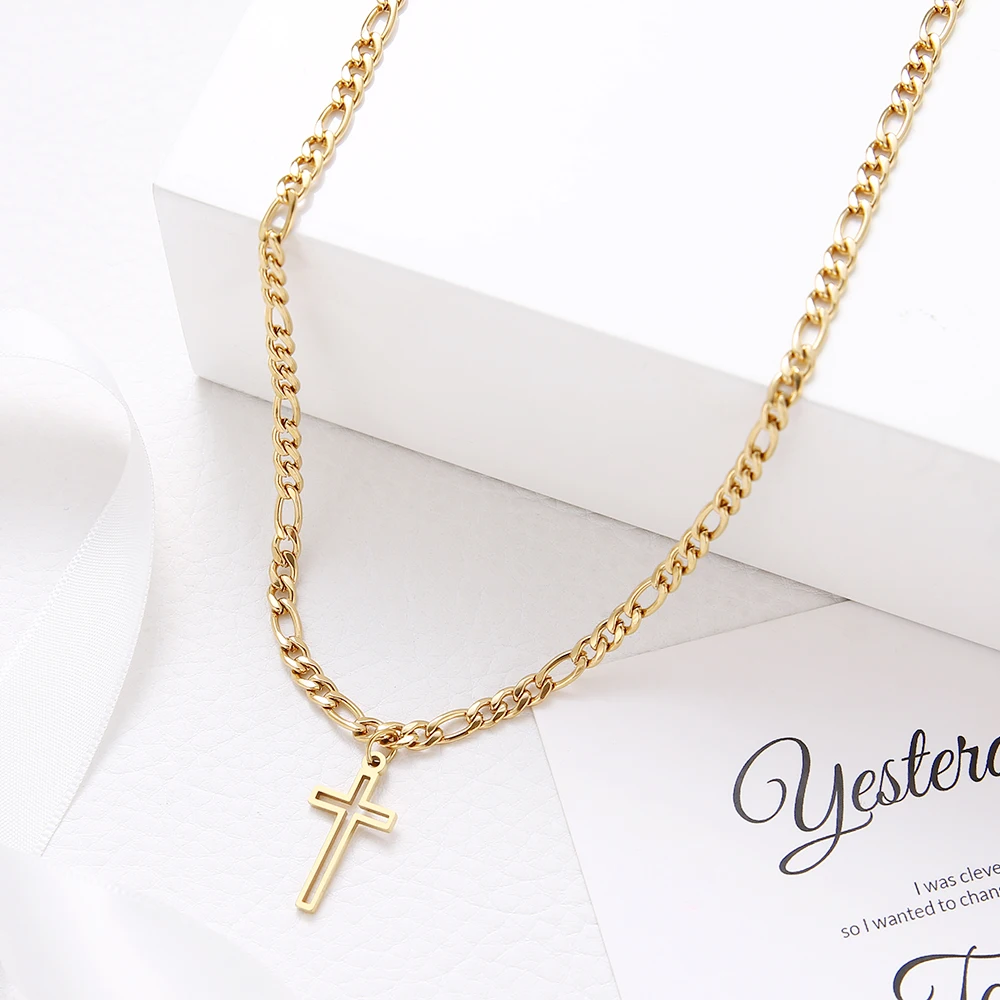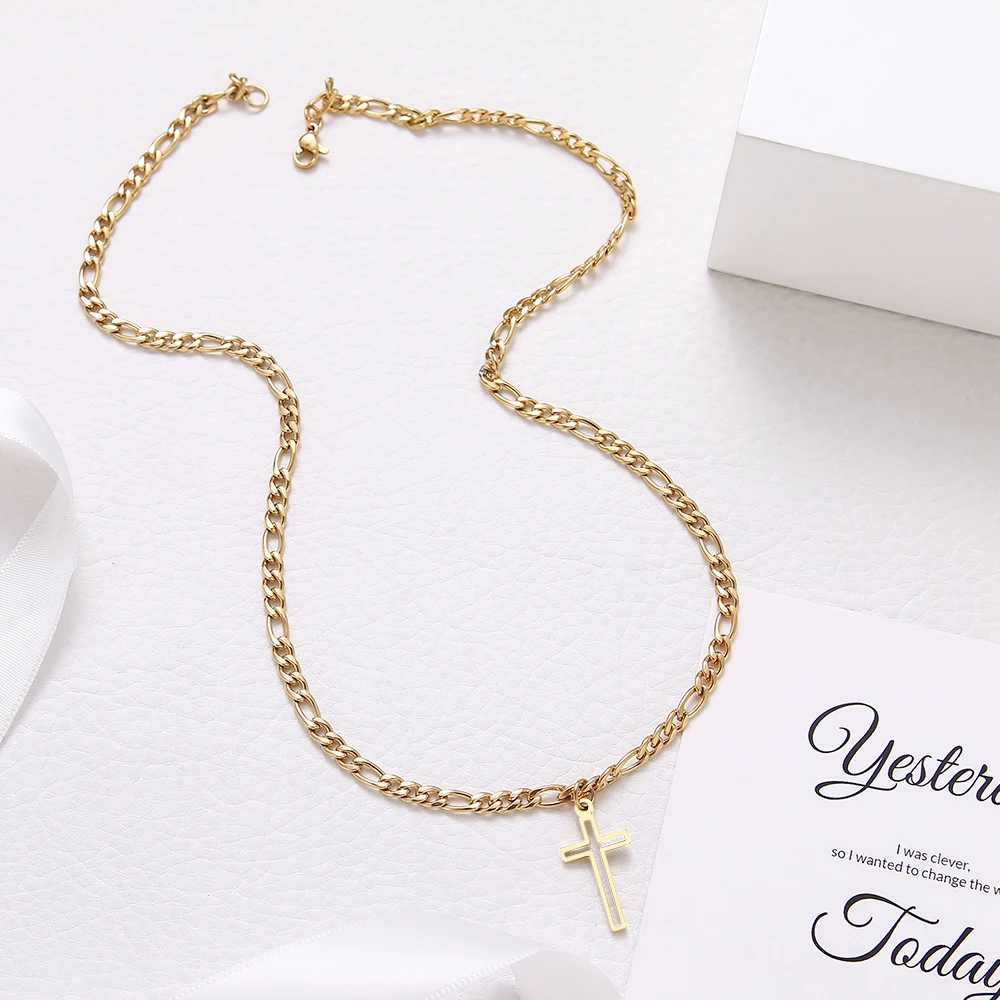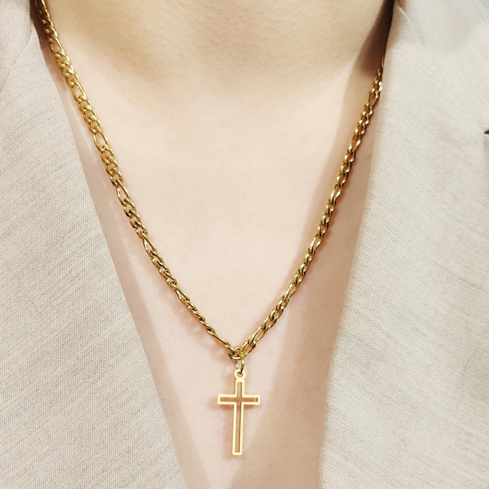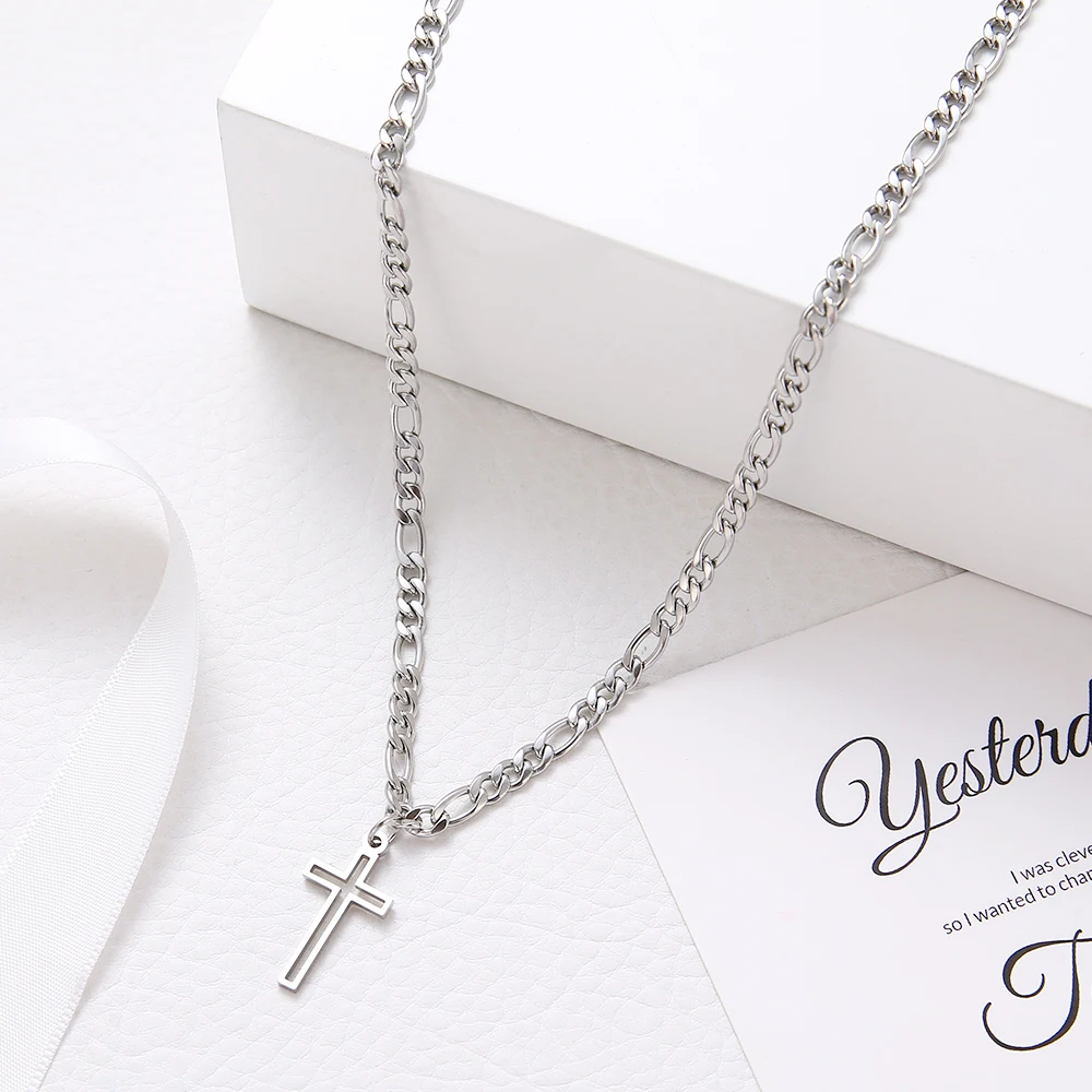 Crystal Round Hollow Cross Necklace For Women And Men Stainless Steel Cuban Chain Necklaces New Statement Wedding Jewelry S761