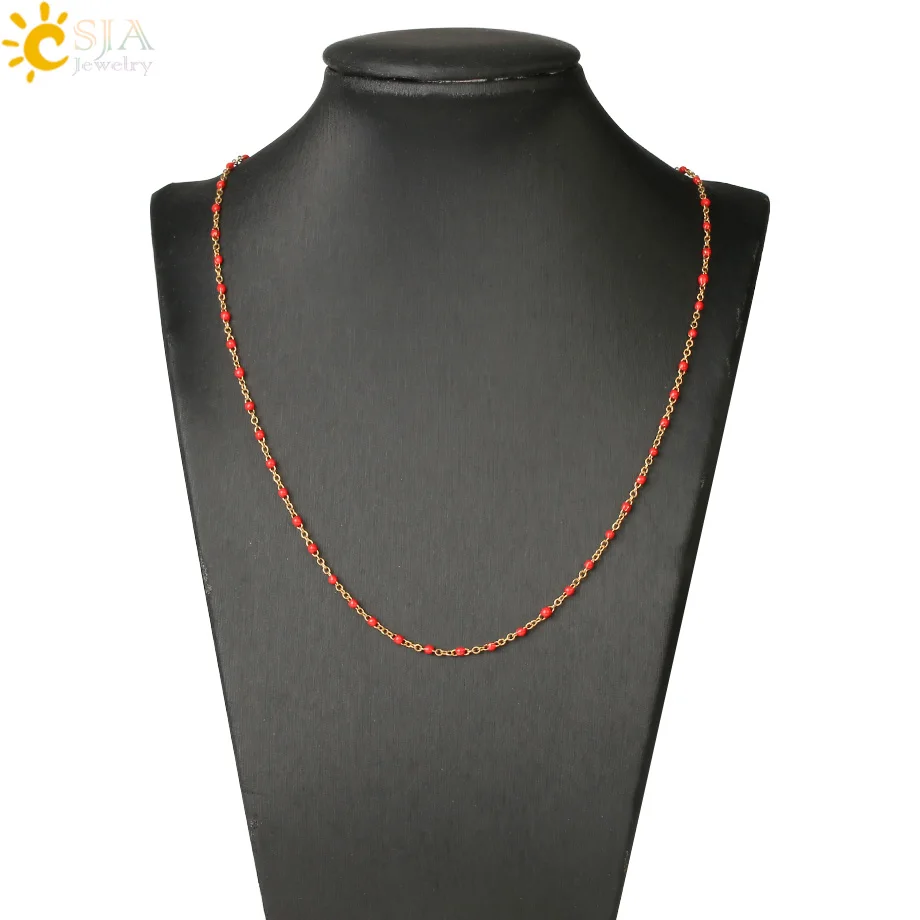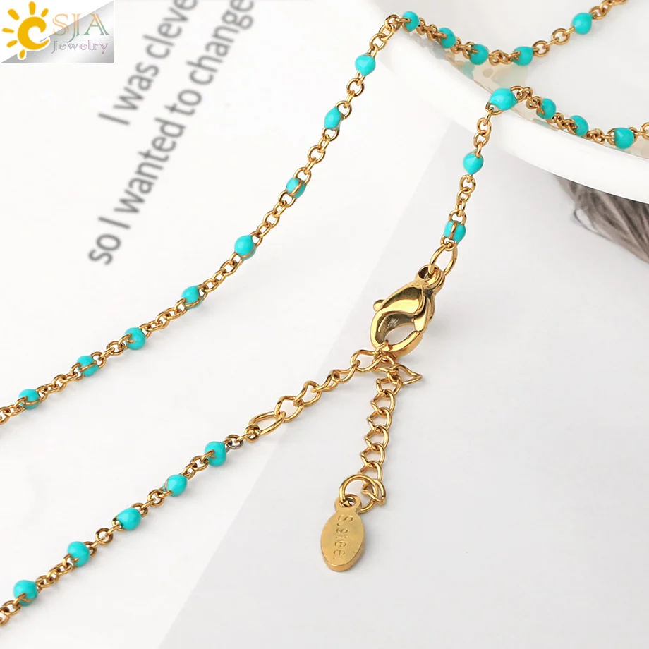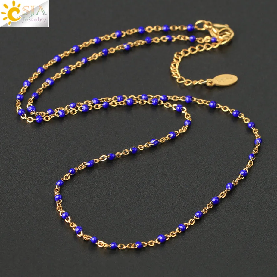 | CSJA Fashion Women Stainless Steel Necklace Gold Color Beaded Chain Chokers Necklaces Chic Wedding Gift Collier Femme 2020 S673 | |