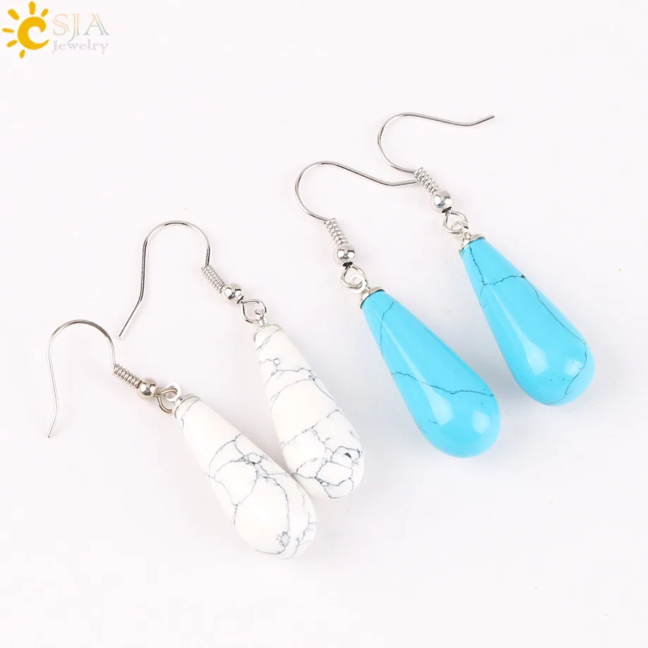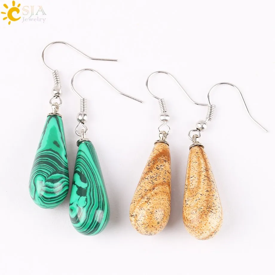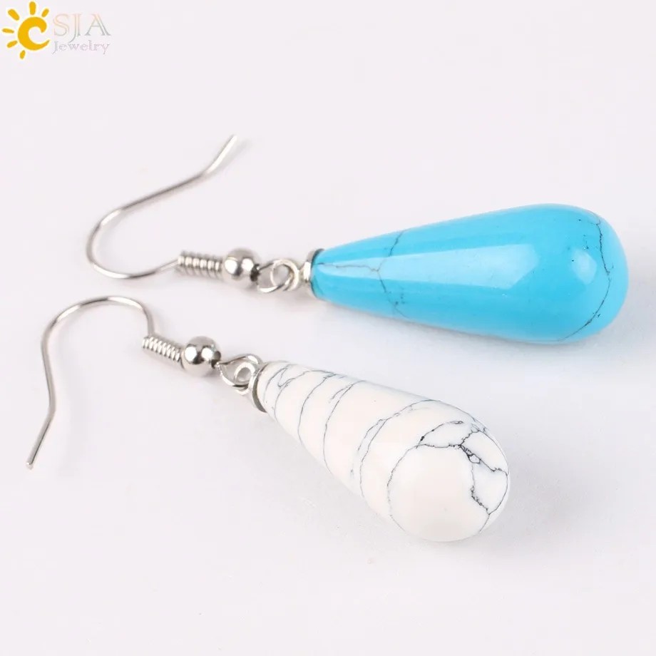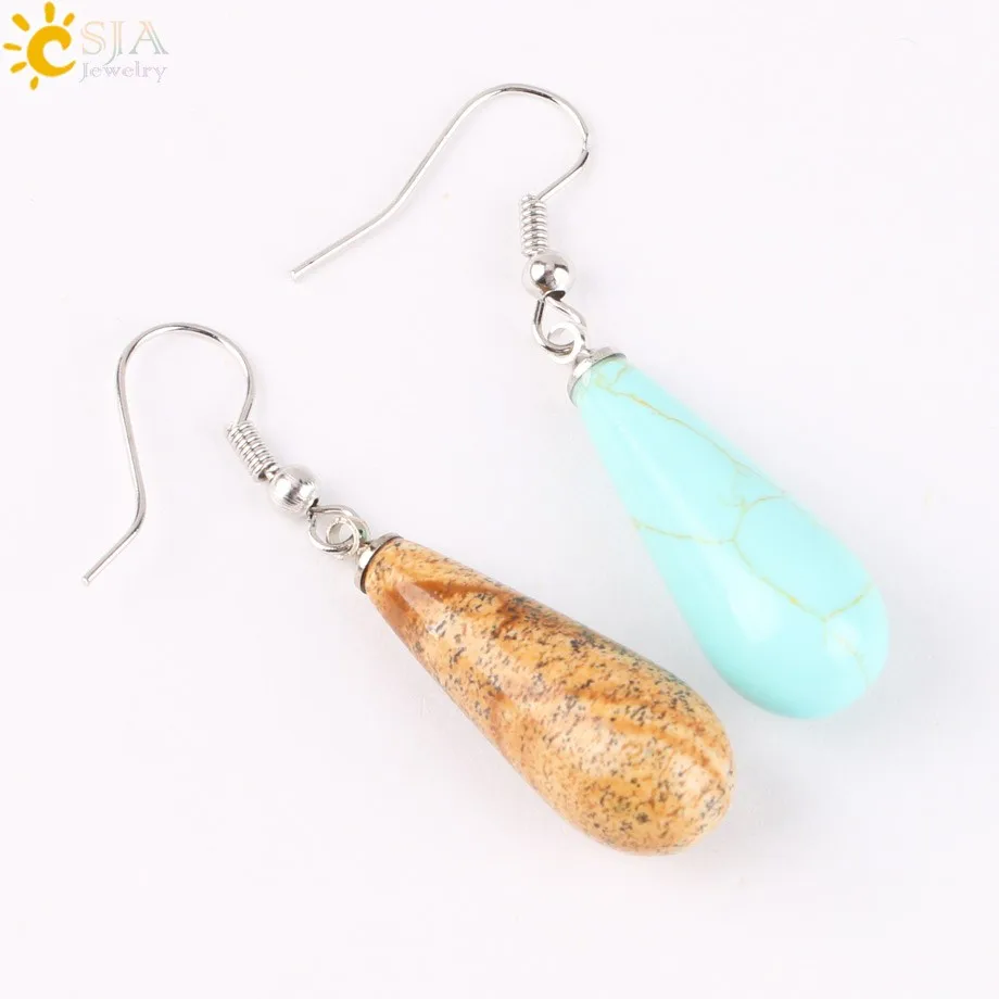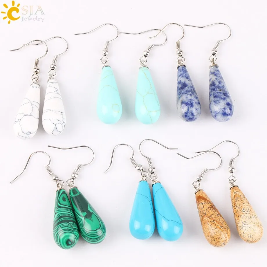 CSJA Summer Women Jewelry Natural Reiki Chakra Gem Stone Beads Pendant Water Drop Dangle Earring Pink Purple Crystal Gift E110 |