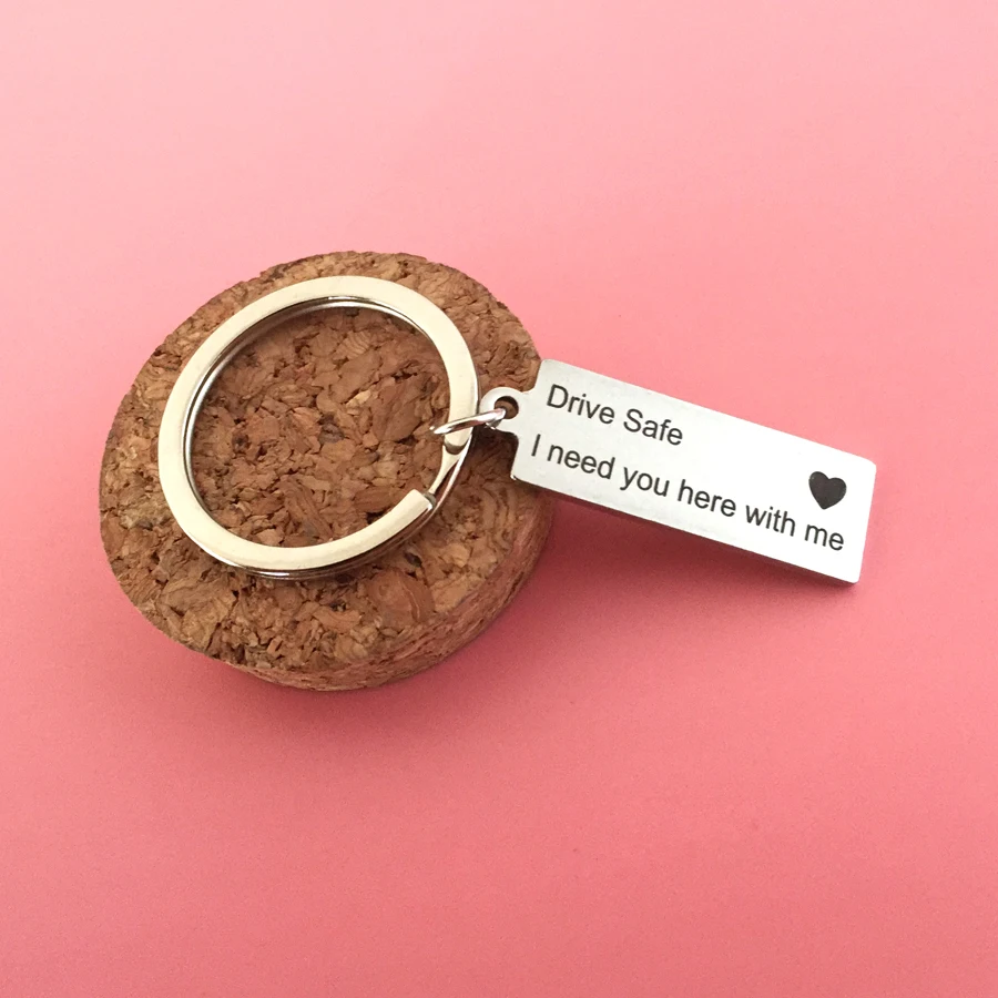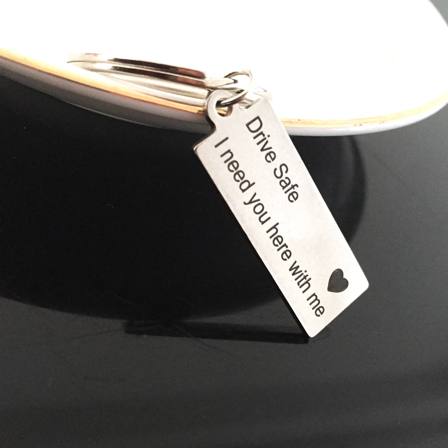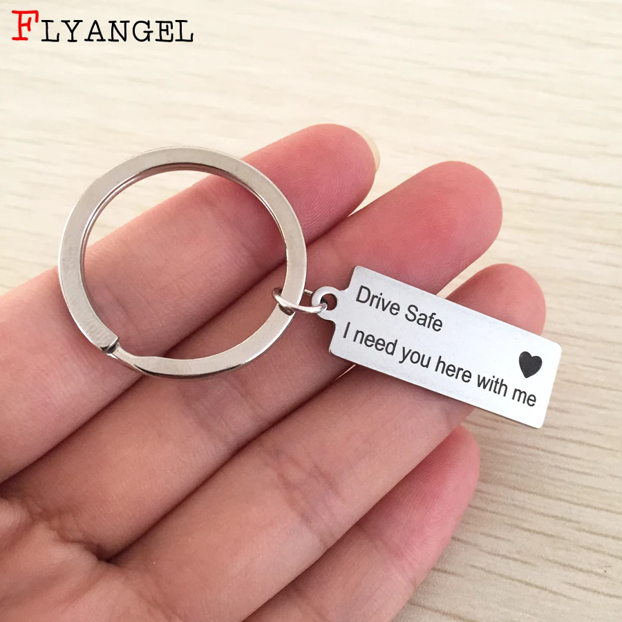 Custom Fashion Keyring Gifts Engraved Drive Safe I Need You Here With Me Keychain Couples Boyfriend Girlfriend Jewelry Key Chain