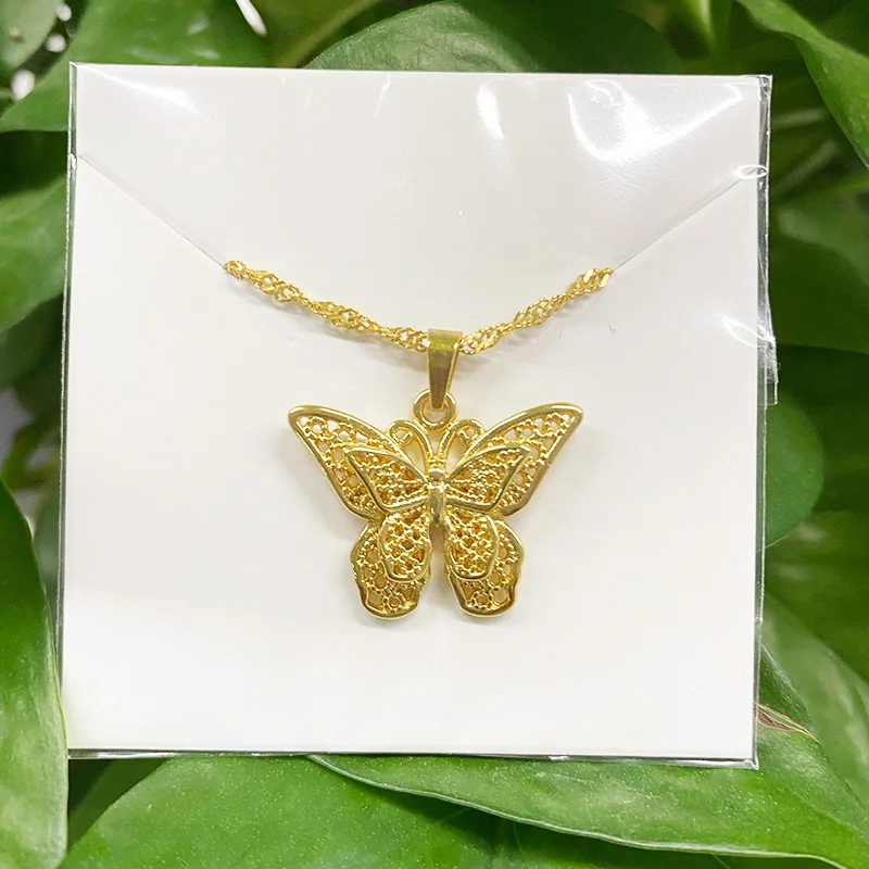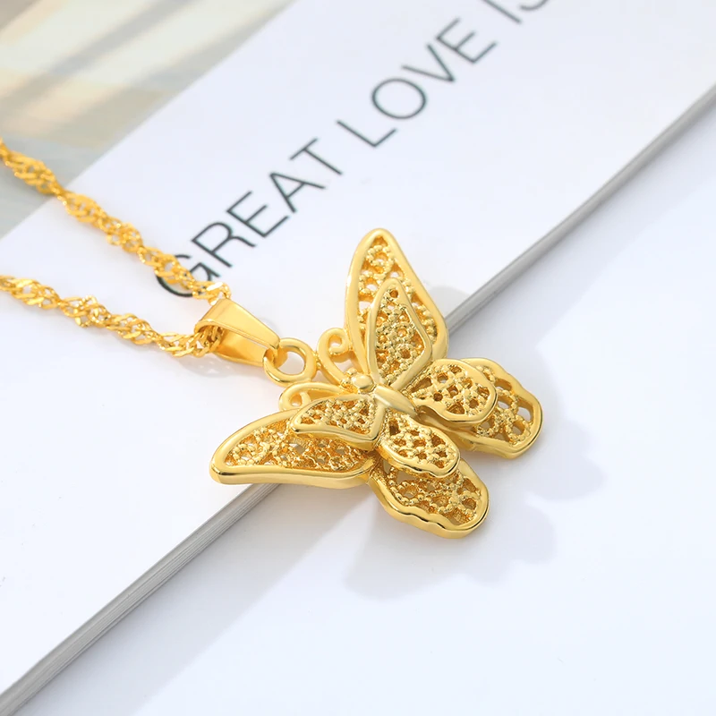 Cute Butterfly Statement Necklaces Pendants Woman Chokers Water Wave Chain Stainless Steel Yellow Gold Hollow Animals Jewelry