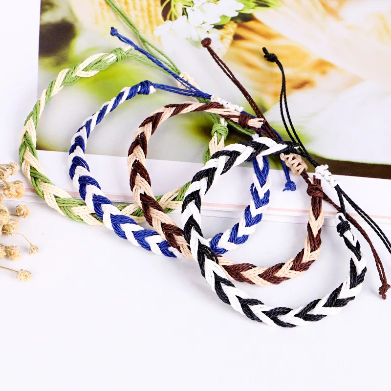 Cute Multistring Braided Bracelets Women Men Waterproof Waxed String White Waves Ocean Sunrise Black Mini Braided Surf Jewelry