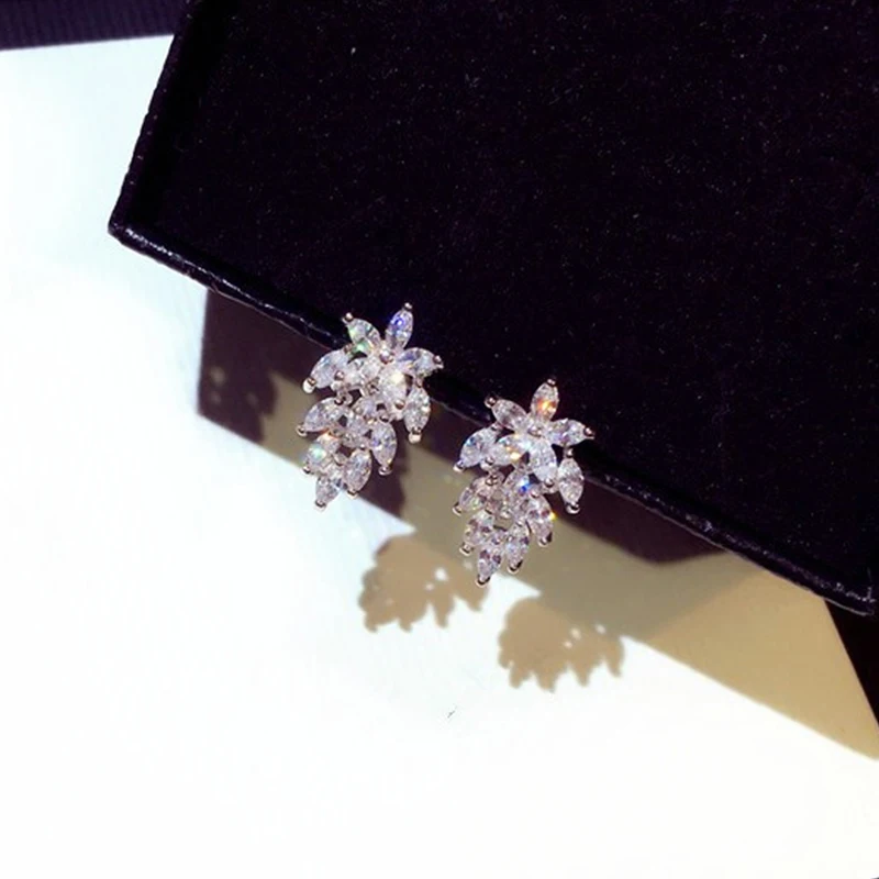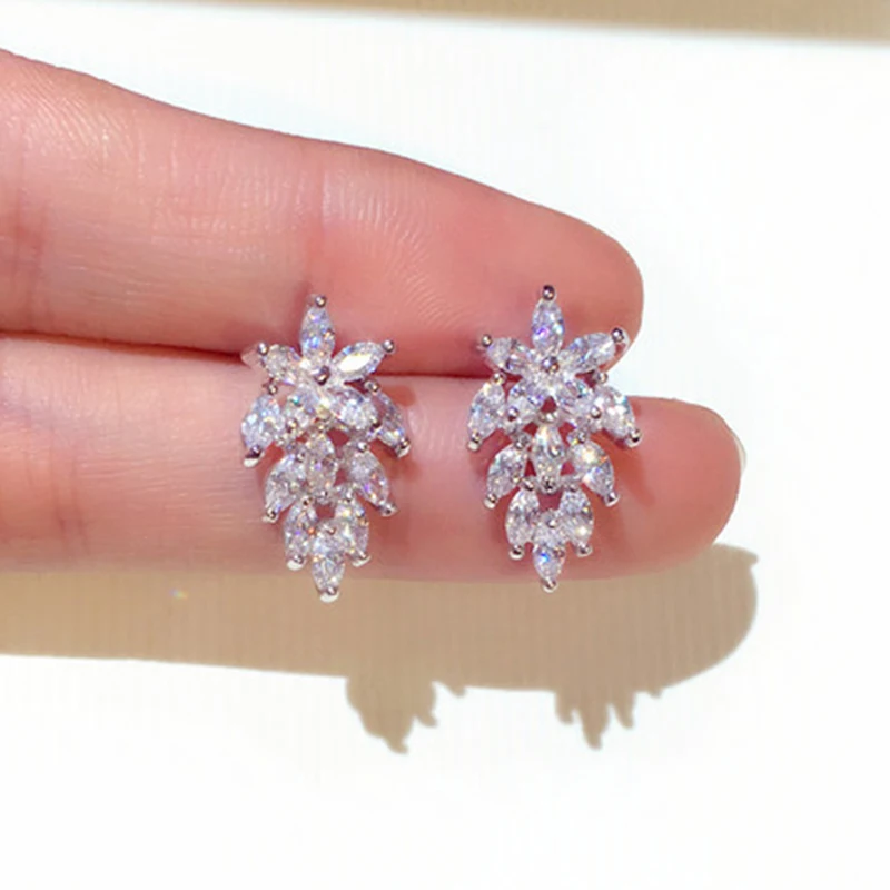 Korean Trendy Bling Zirconia Wing Tassel Earring for Women AAA Transparent Zircon Temperament Shining Stud Earring Pendant Gift