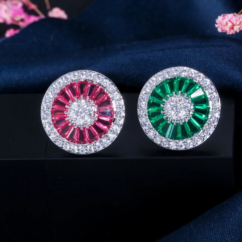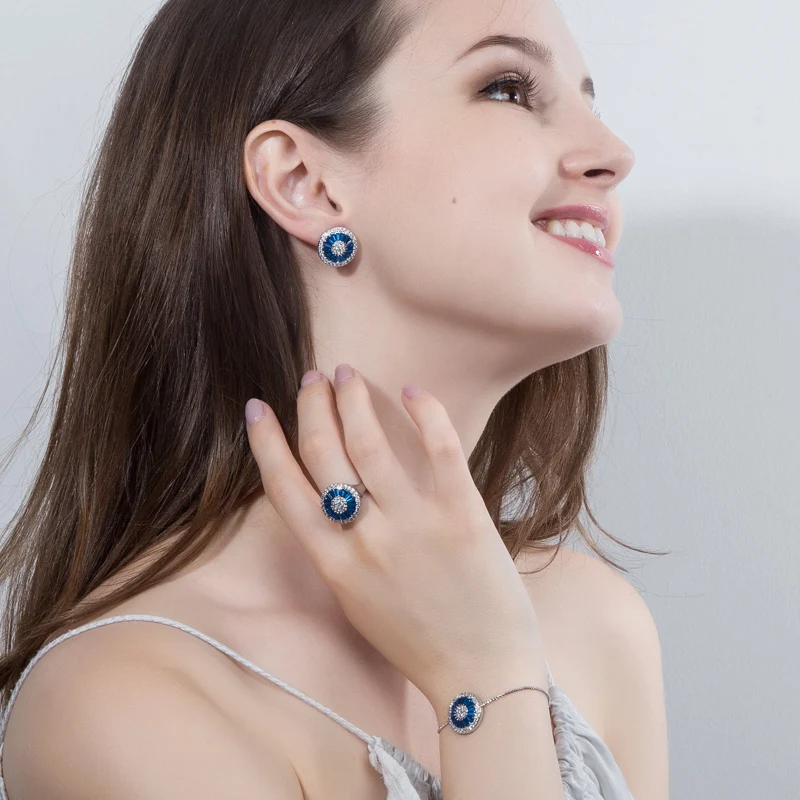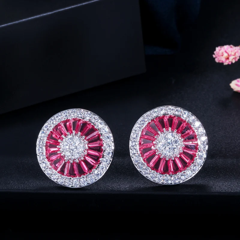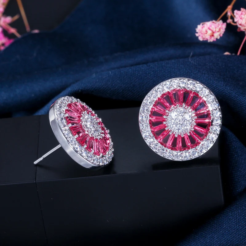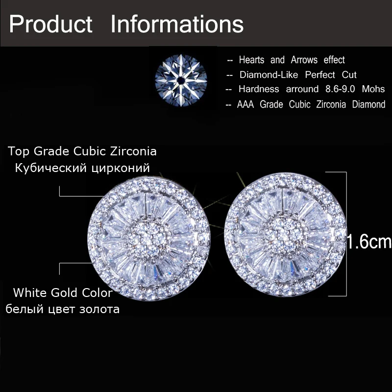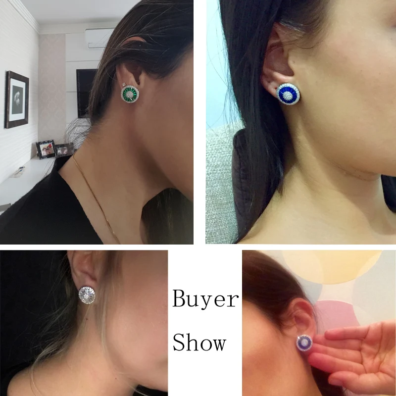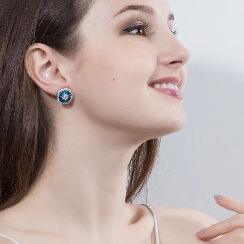 CWW Noble Romantic Dark Blue Crystal Jewelry Luxury Round Shape Cubic Zircon Wedding Stud Earrings For Women Party CZ108