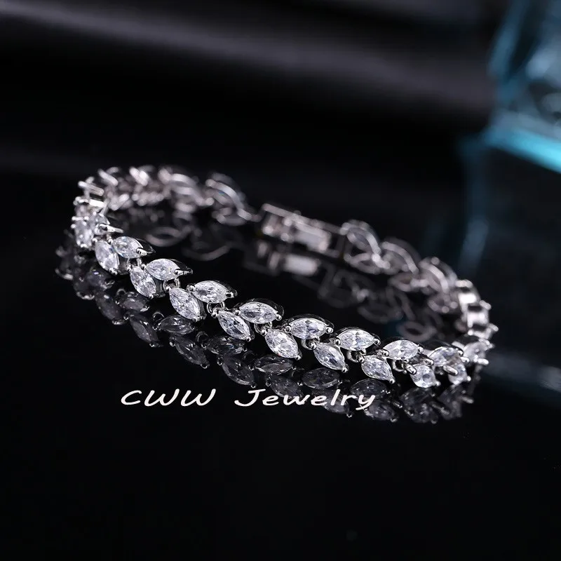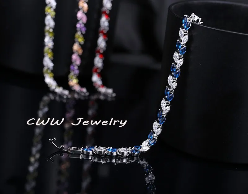 CWWZircons The New 2018 Summer Design White Gold Color Austrian Royal Blue Crystal Bracelets For Women Fashion Jewelry CB133