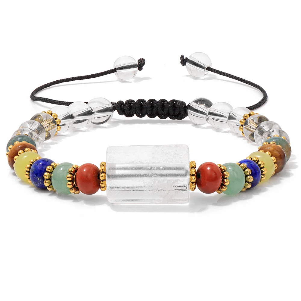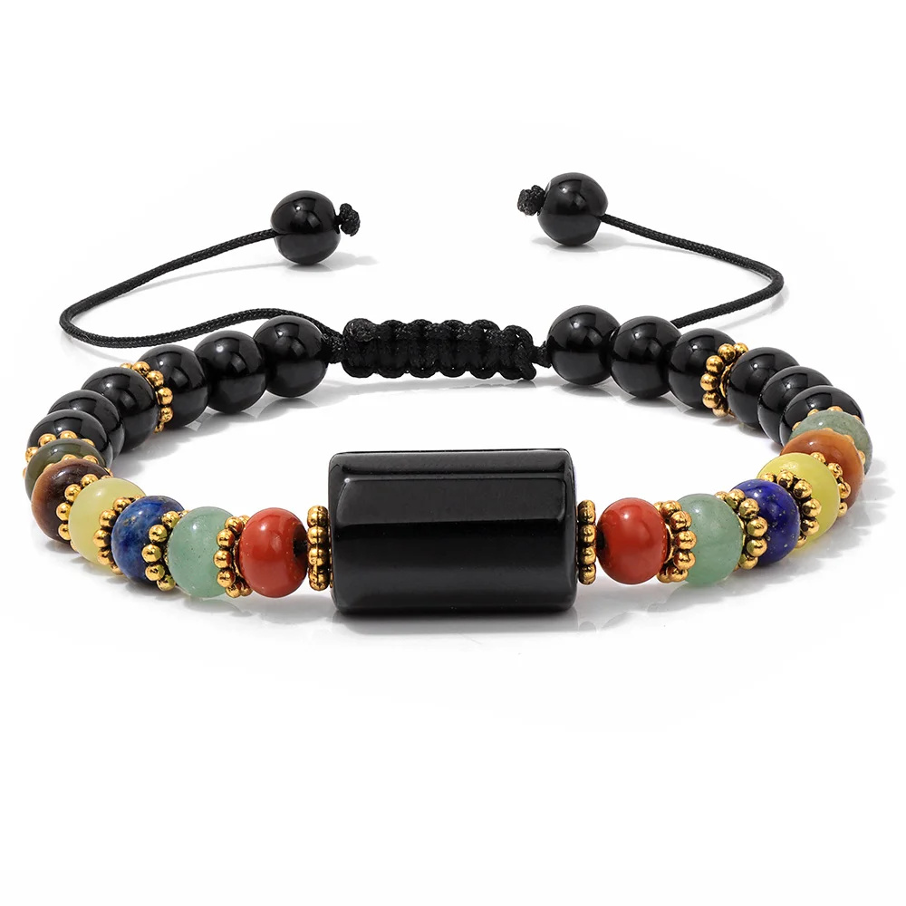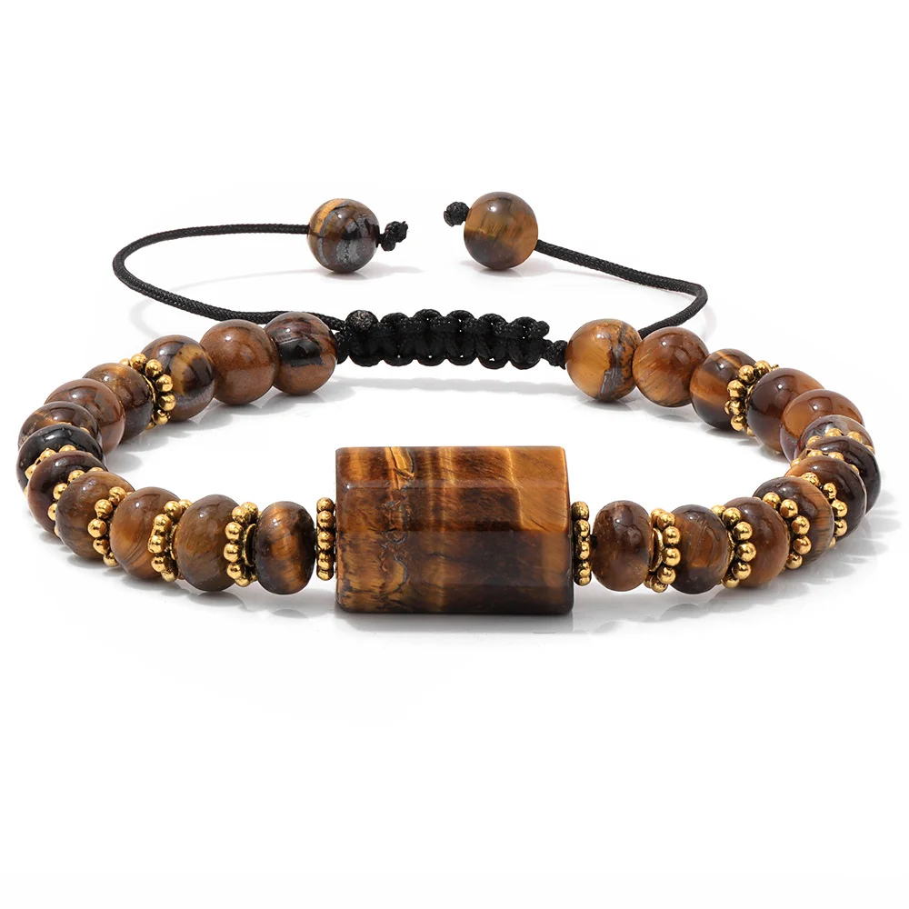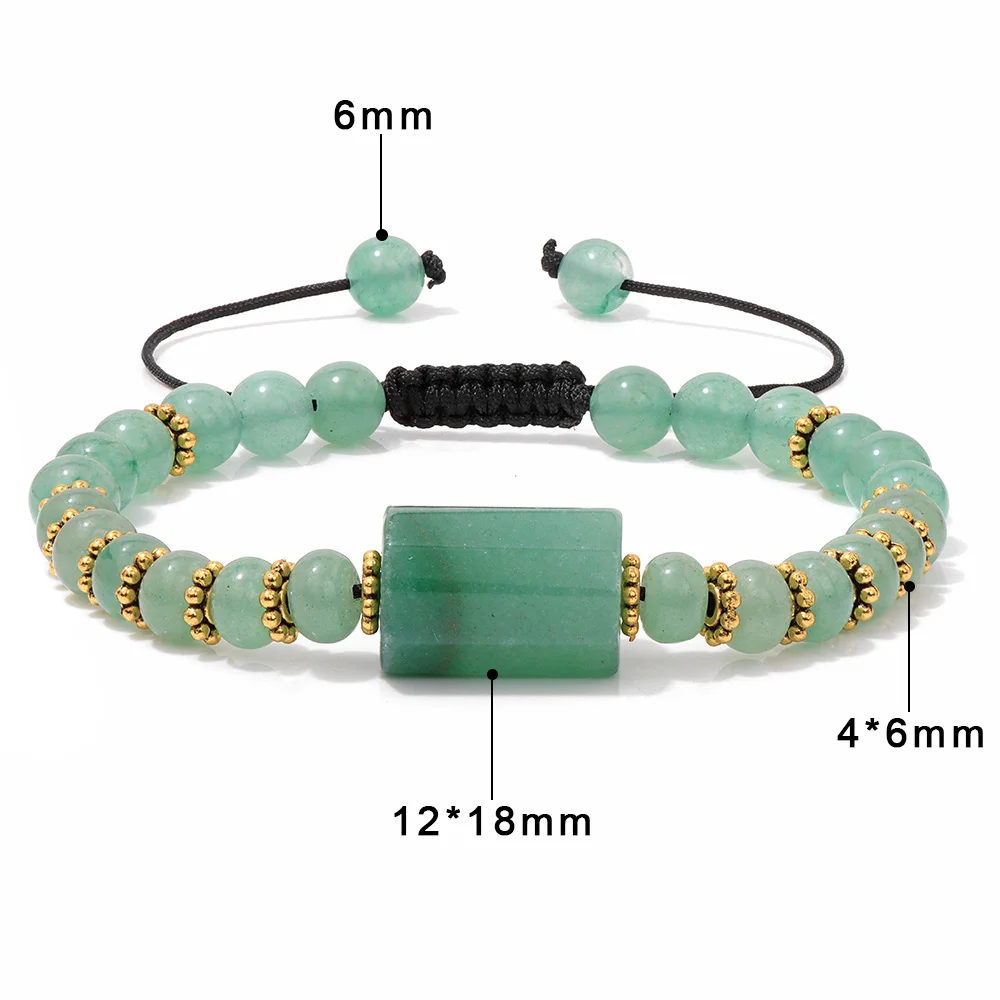 1PC Natural Green Emperor Stone Beads Woven Bracelet Polished Block Flat Shape Sea Sediment Adjustable Rope Lady's Gift Bracelet