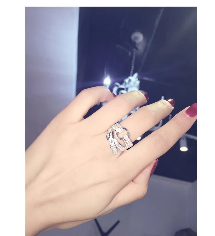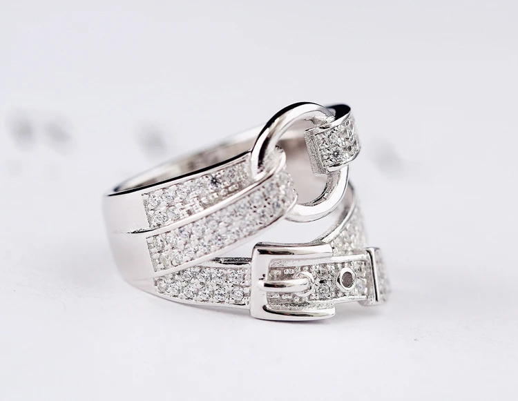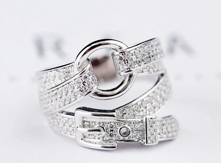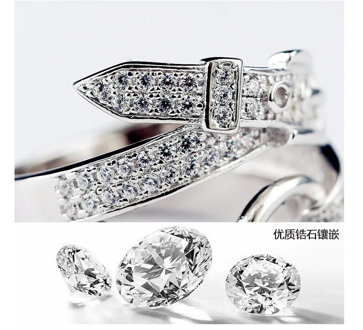 DIEERLAN Bohemian Fashion 925 Sterling Silver Zirconia Belt Rings for Women Wedding Engagement Big Finger Ring Fancy Jewelry