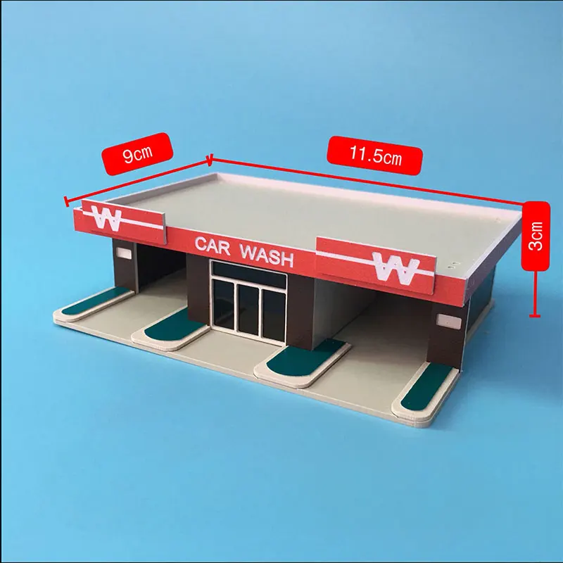 DIY 1/150 N Scale White Brown Car Wash House Building Model Train Scene Sand Table Plastic Assembly Building Kits