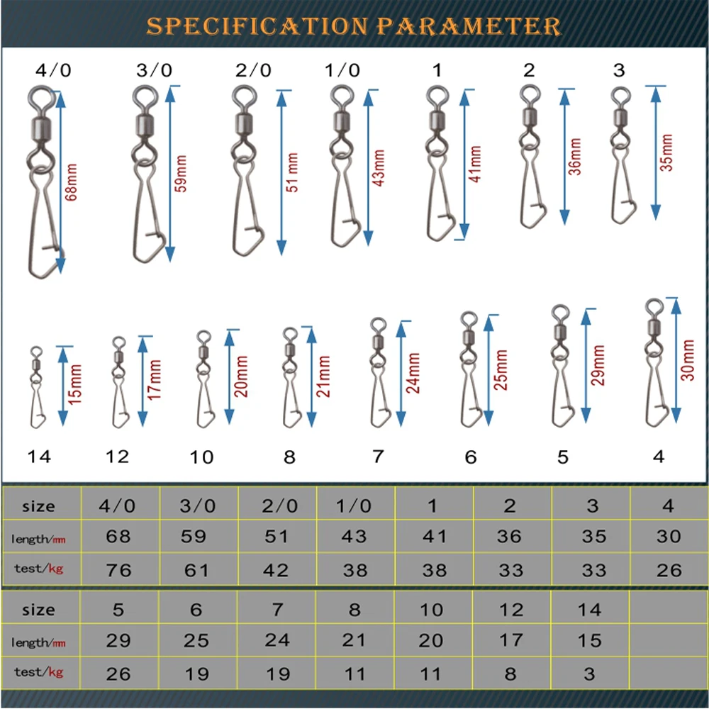 DNDYUJU 50PCS Fishing Connector Barrel Swivels Snap Rolling Swivel For Fishhook Link Fishing Lure Accessories