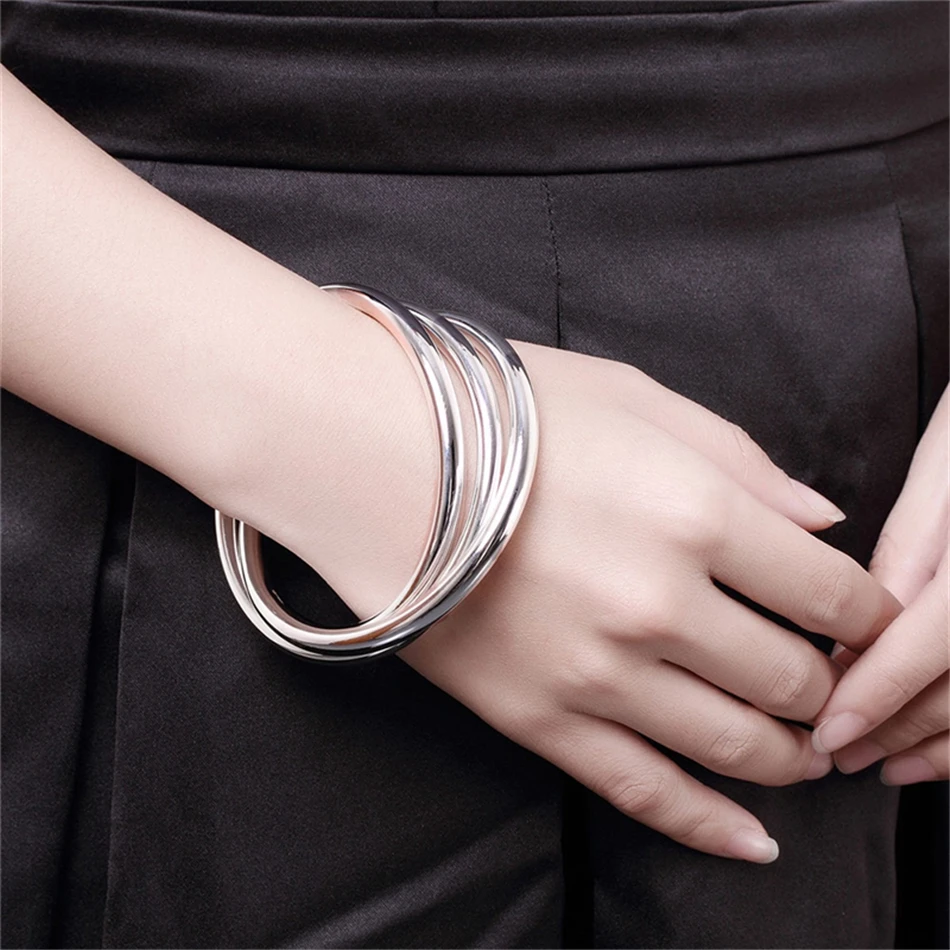 925 Silver Smooth Open Cuff Bracelets&Bangles For Women Fashion Silver Jewelry