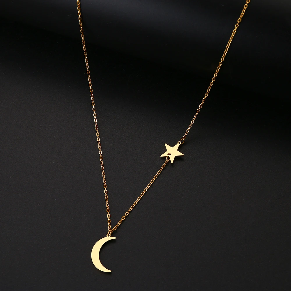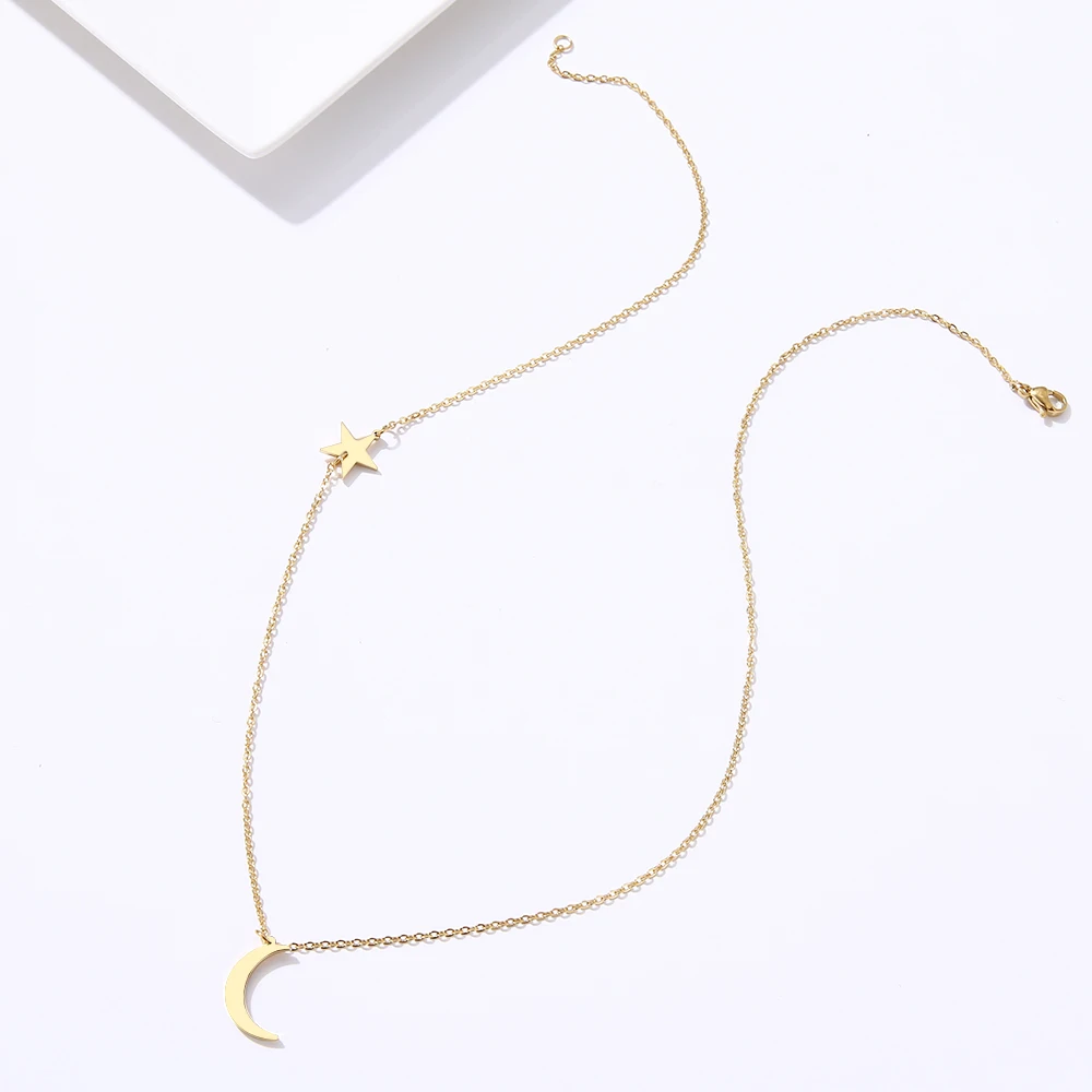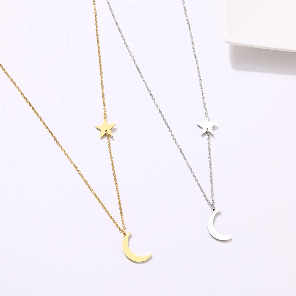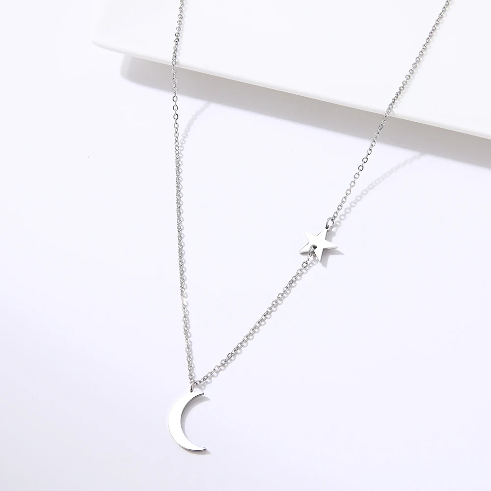 DOTIFI For Women Classic Stainless Steel Women’s Necklace Fashion Gold and Silver Moon Star Clavicle Chain Engagement Jewelry