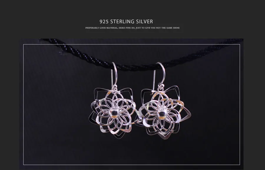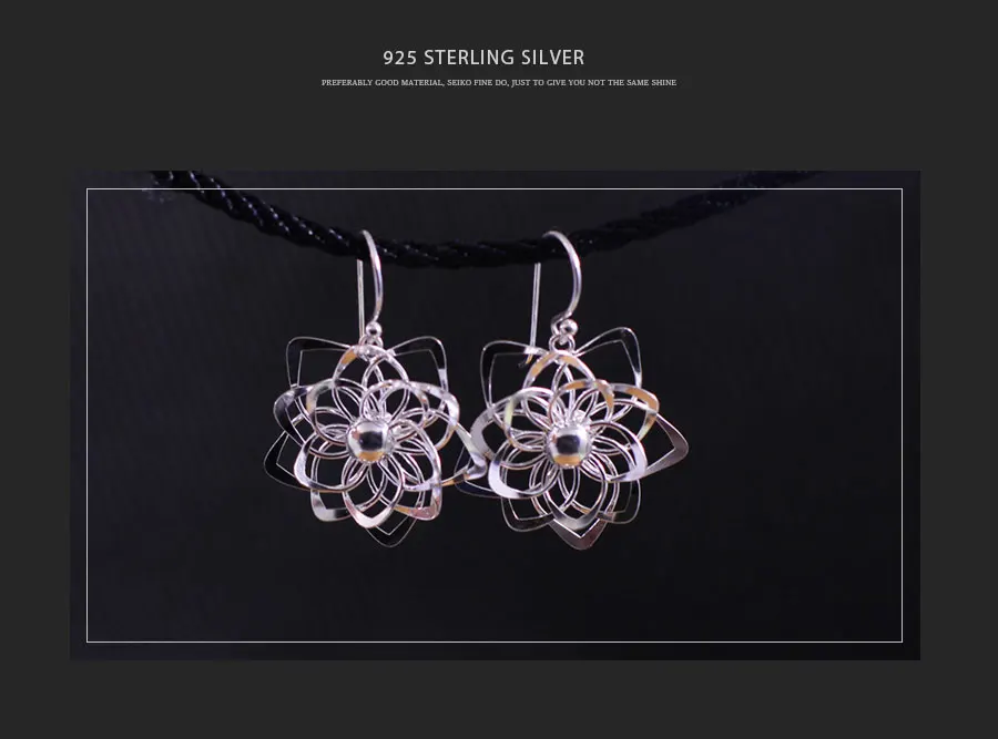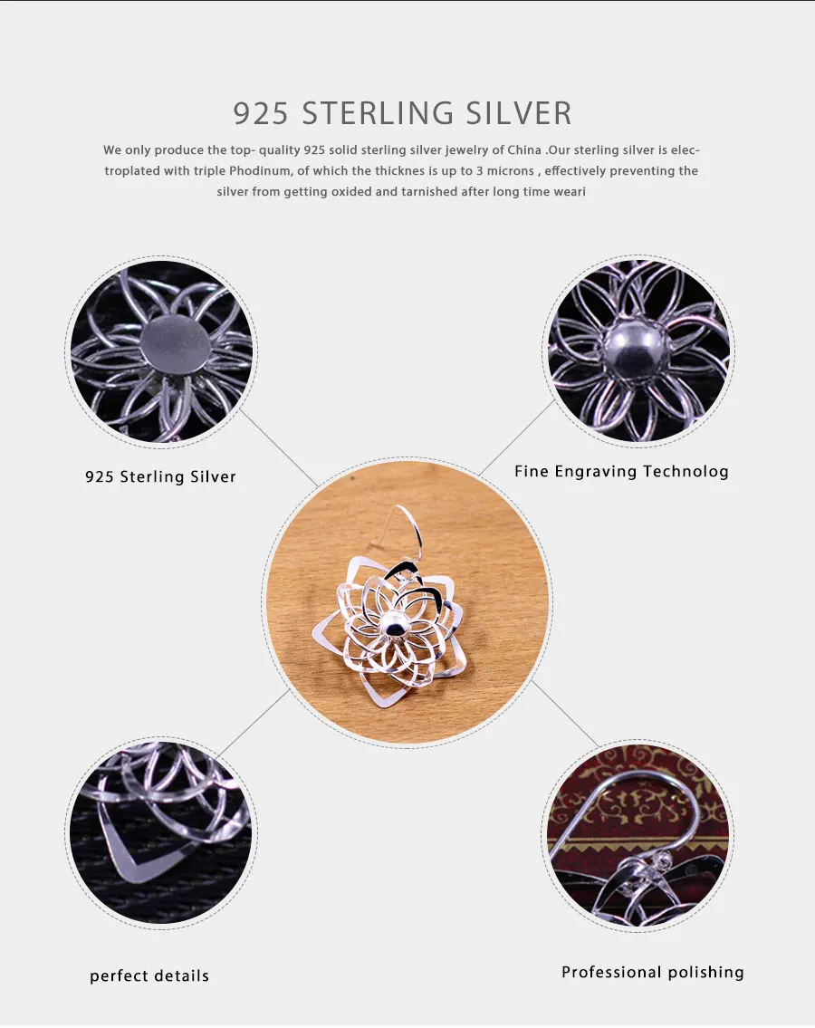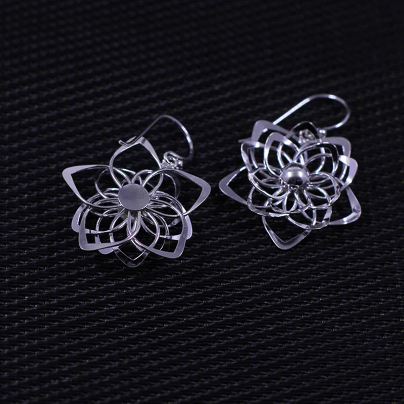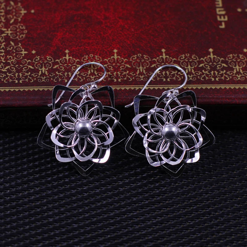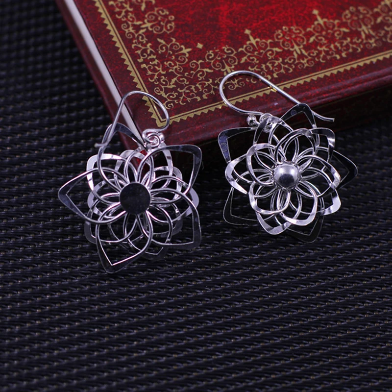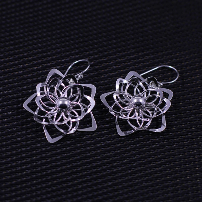 Drop Earrings For Women Genuine 925 Sterling Silver Handmade Hollow Line Flower Simple Boho Decorating Ethnic Jewelry 2018 NEW