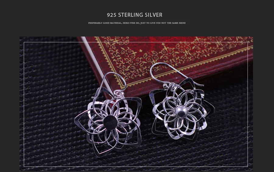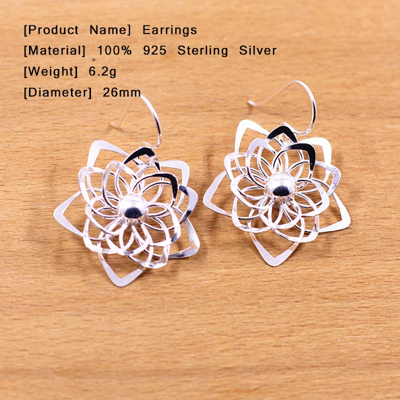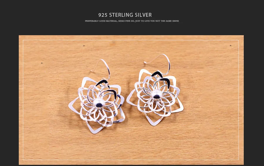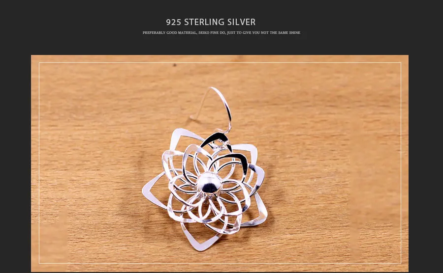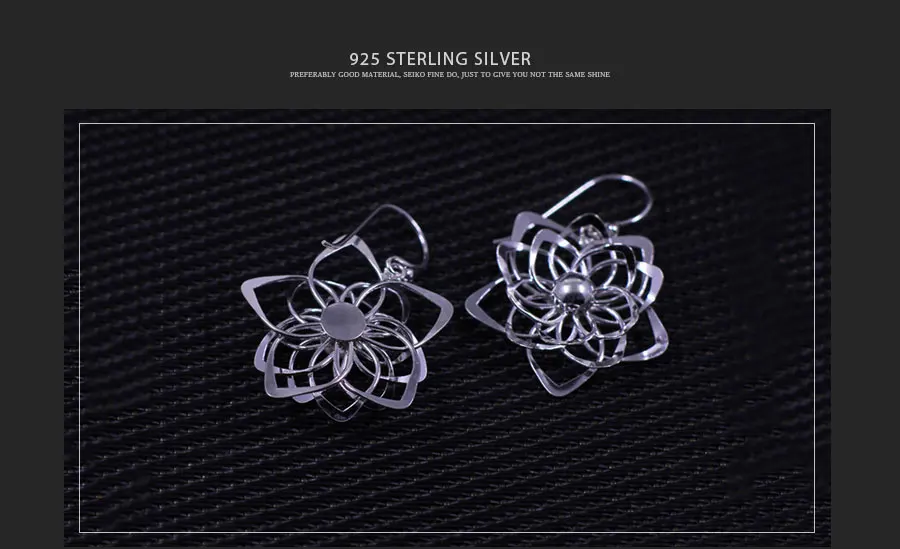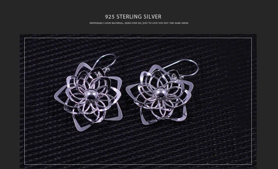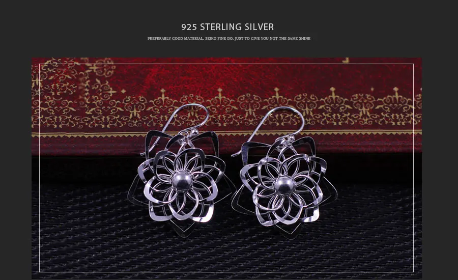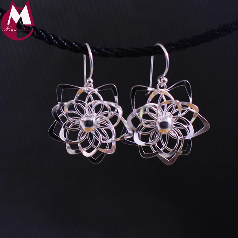 Drop Earrings For Women Genuine 925 Sterling Silver Handmade Hollow Line Flower Simple Boho Decorating Ethnic Jewelry 2018 NEW