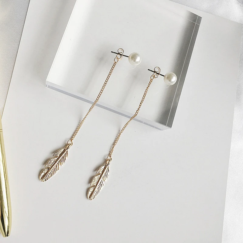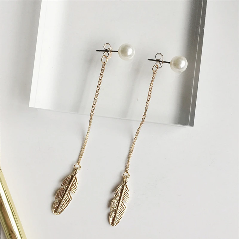 ES287 Simulated Pearls Long Tassel Dangle Earrings For Women Leaf Feather Drop Brincos Bijoux boucle d'oreille Jewelry Earring