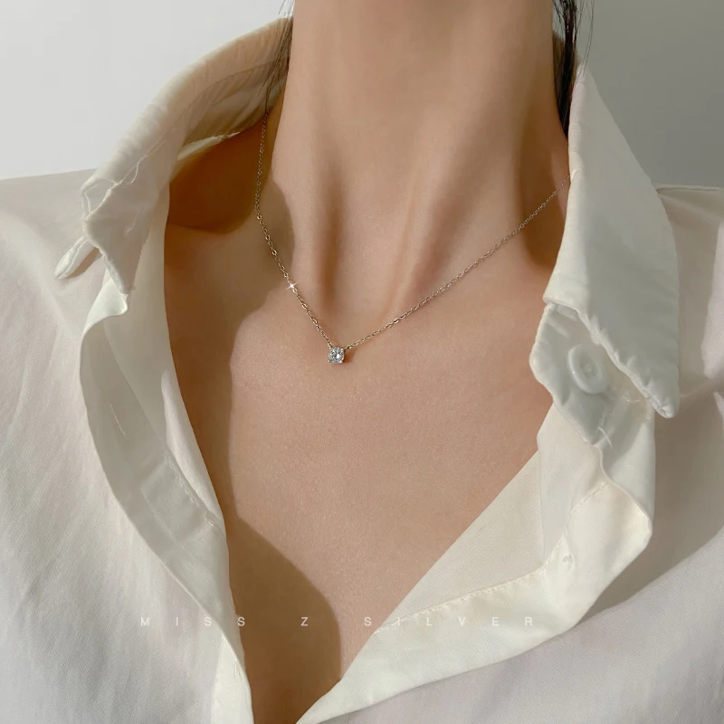 Minimalist 925 Sterling Silver Geometric Necklace AAA Shiny Zircon Long Cube Fine Jewelry Girls Party Birthday Got Engaged Gift