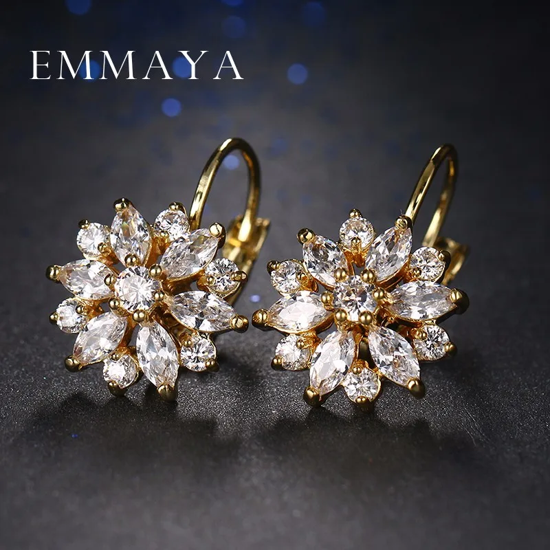 Emmaya Hot Trendy Luxury Crystal Flower Stud Earrings For Women New Fashion Elegant Gold Color Zircon Earrings