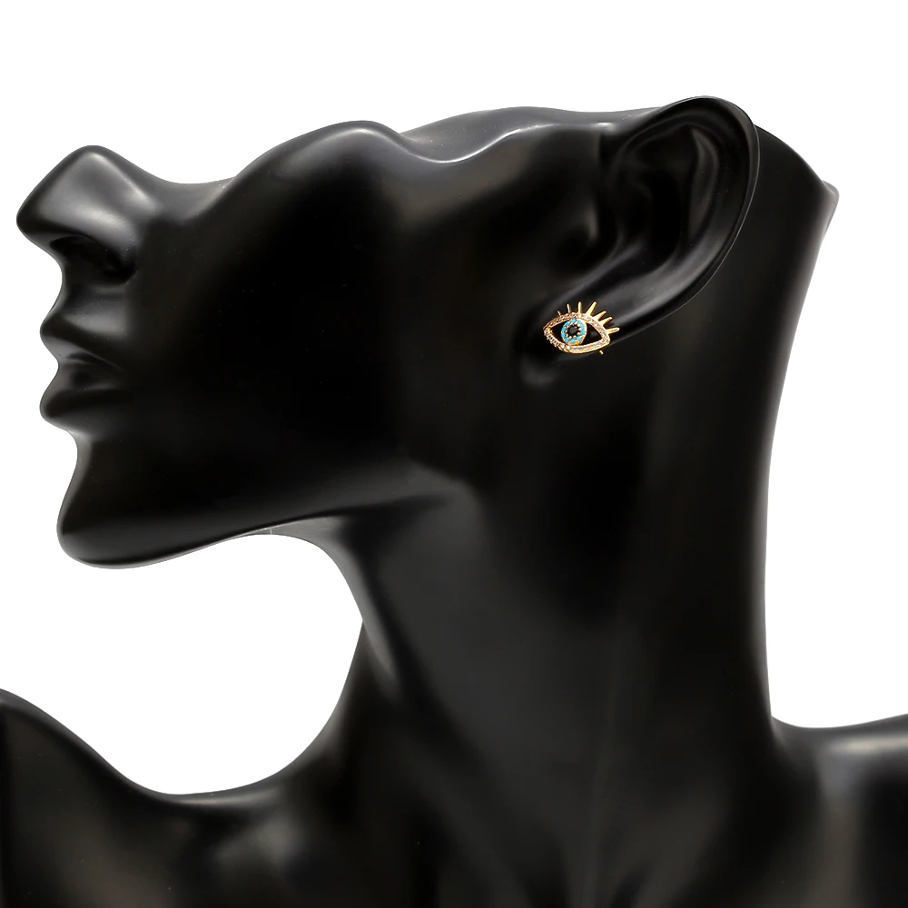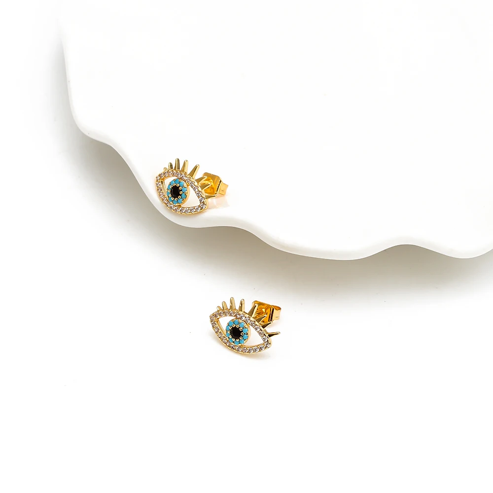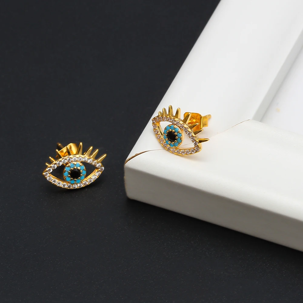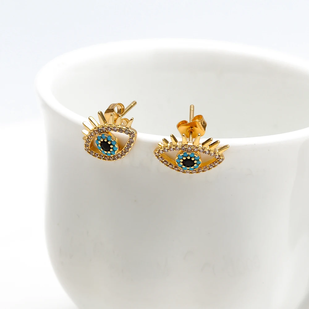 EVIL EYE Micro Pave Zircon Stud Earrings Gold Color Blue Turkish Eye Earrings Fashion Jewelry for Women Ladies Girls EY6510