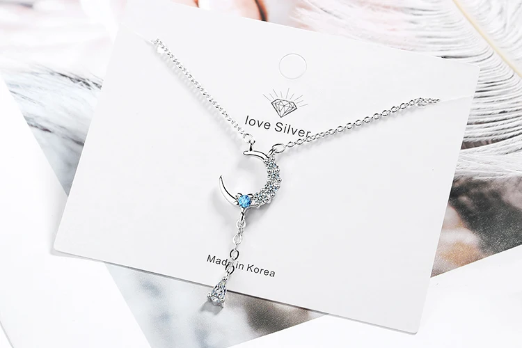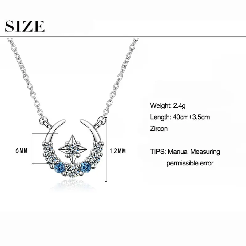 Fashion 3 Styles Star Moon Necklace With Blue Zircon Embellished Water-Drop Shaped Jewelry S-N378