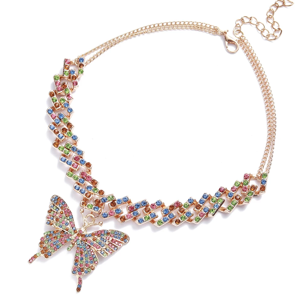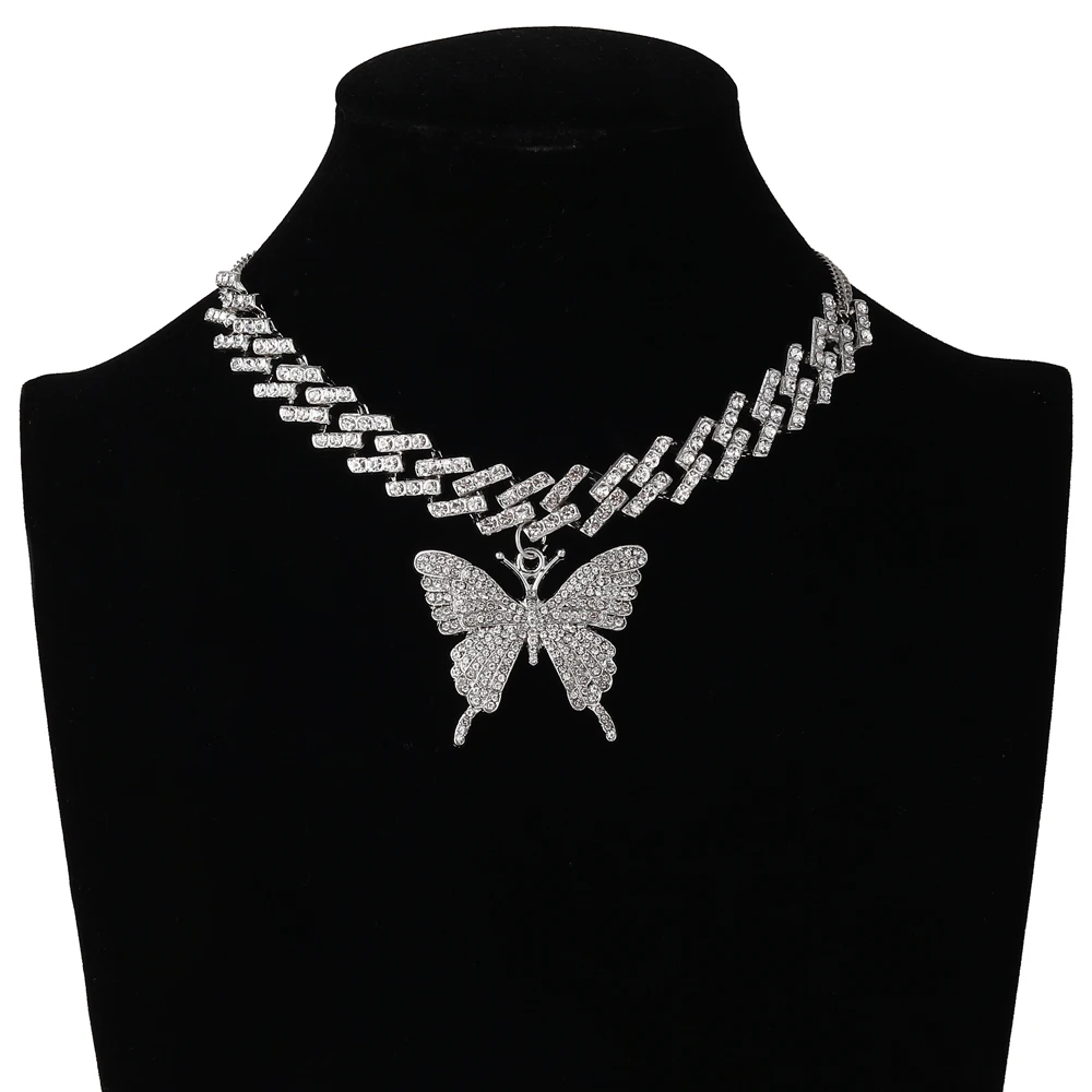 Fashion Butterfly chain iced out cuban link chain butterfly necklace womens 2020 chocker hip hop jewelry ice jewellery