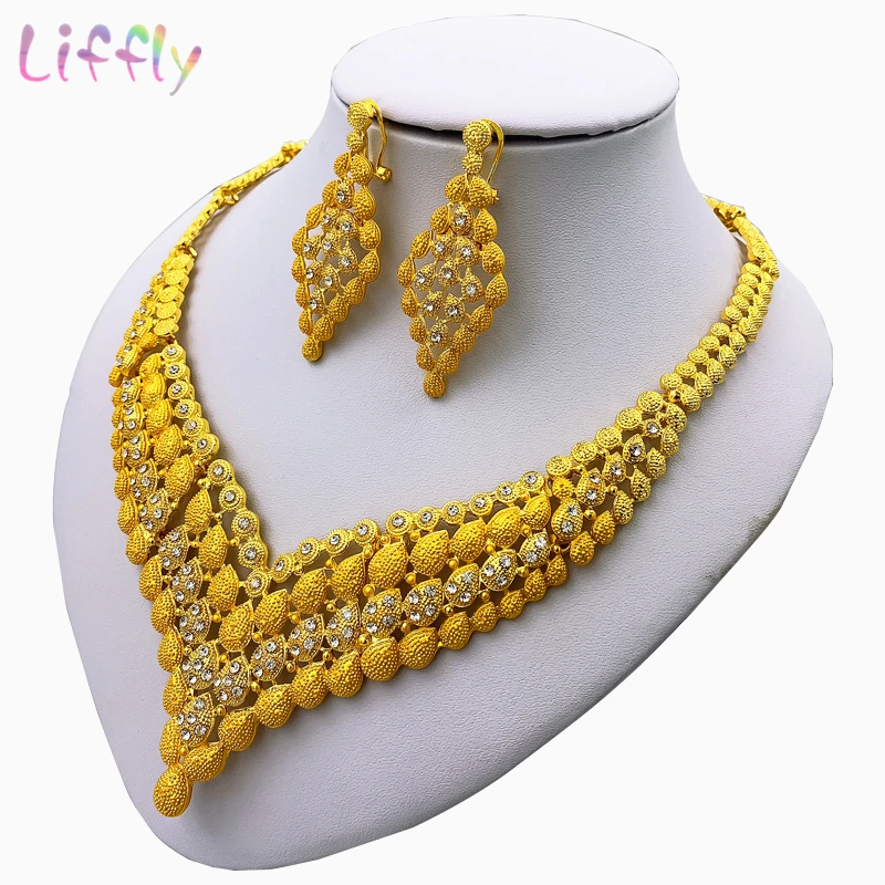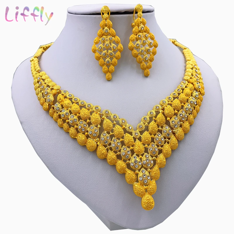 Wedding Bridal Jewelry Sets For Women Necklace Bracelet Earrings Rings Gold Color Dubai African Beads Statement Accessories