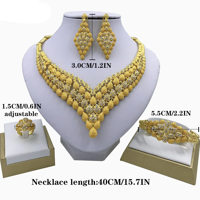 Fashion Charm African Bride Earrings Ring Drop Jewelry Sets Classic Style Wedding Dubai Necklace Bracelet for Women Jewelry Set