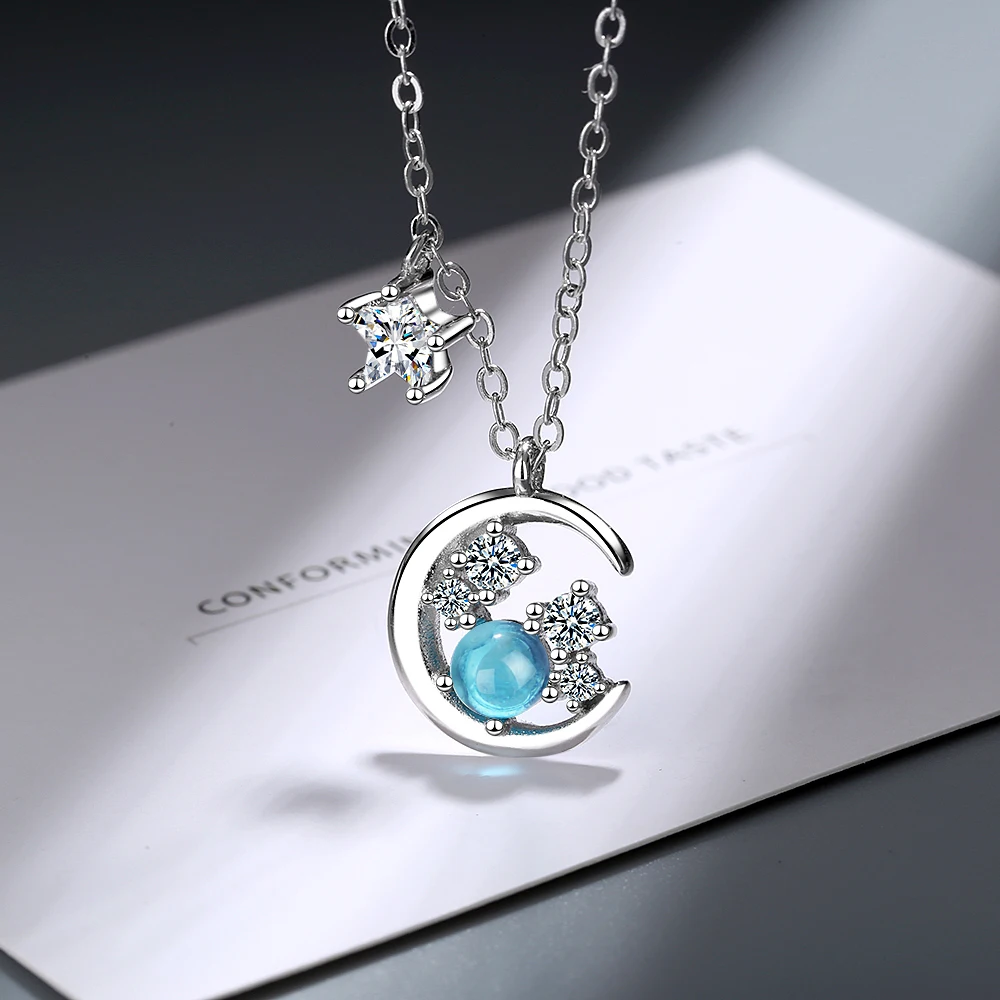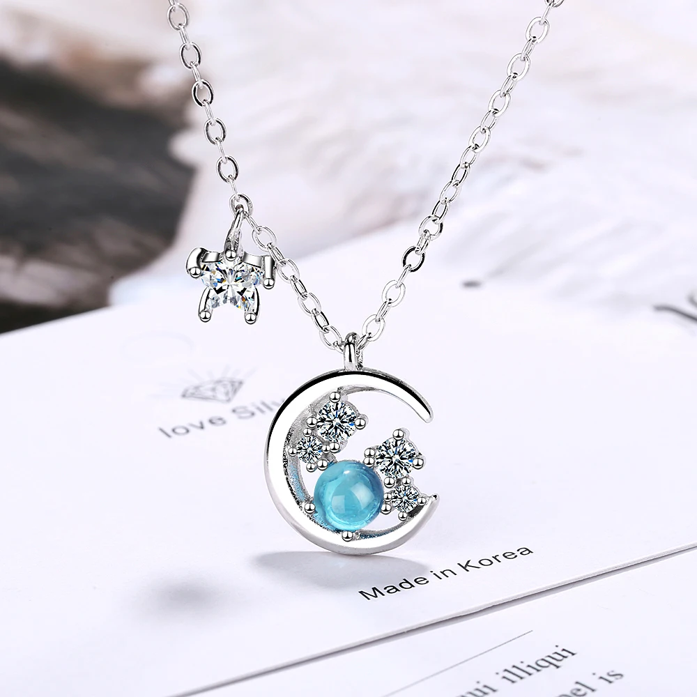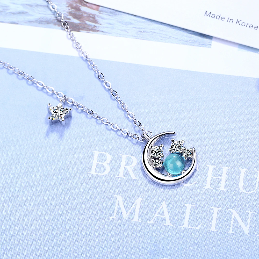 925 Sterling Silver Enamel Moon Star Love Heart Pendant Necklace Choker Jewelry Women Black Pink White Heart cz Charm Necklaces