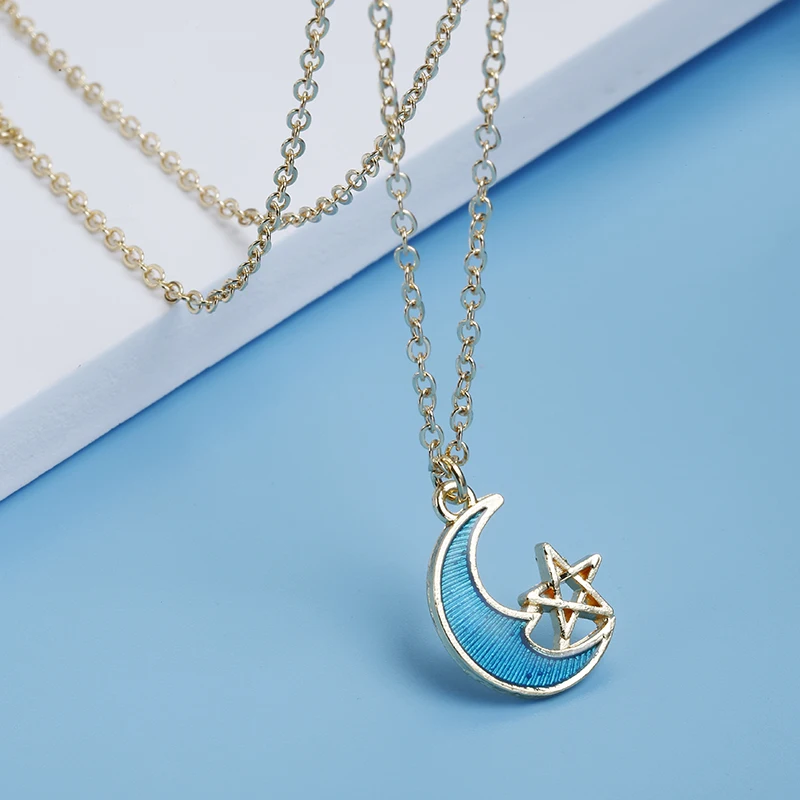 Fashion Choker Necklace Cartoon Enamel Star Moon Planet Pendant Chain Necklaces for Women Gifts Collares Collier Ketting Jewelry