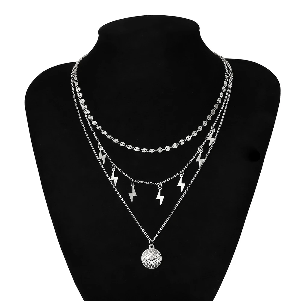 Fashion Gold Lightning Round Sequins Eye Crystal Pentagram Cross Pendant Necklaces For Women Necklace Female Boho Jewelry