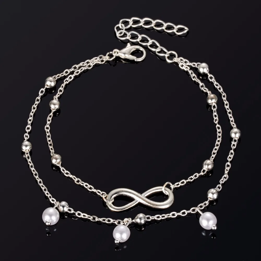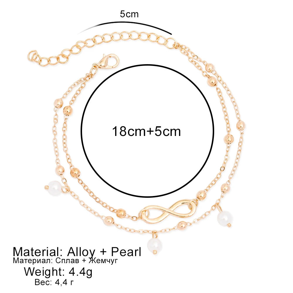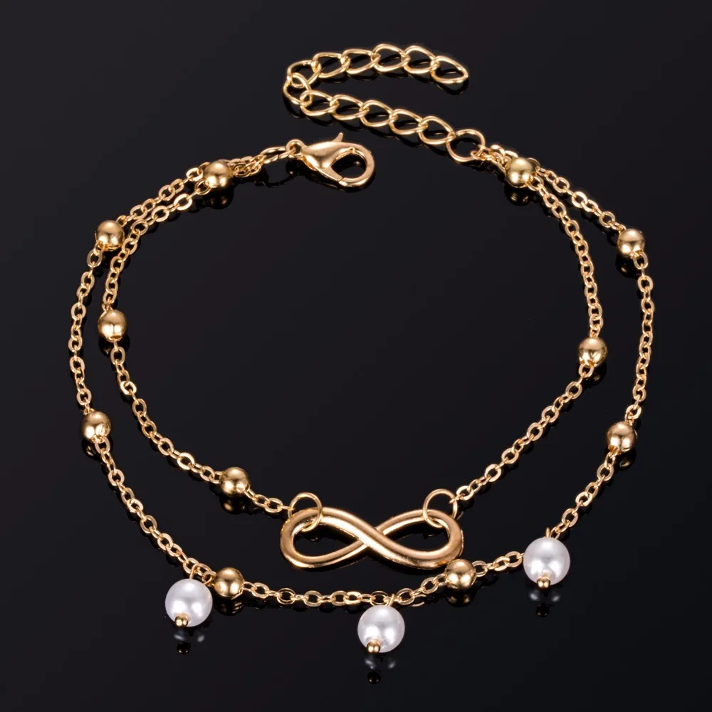 Fashion Gold Silver Color Anklet Women Simulated Pearl Infinity Charm Beads Bohemian Ankle Bracelet cheville Boho Foot Jewelry