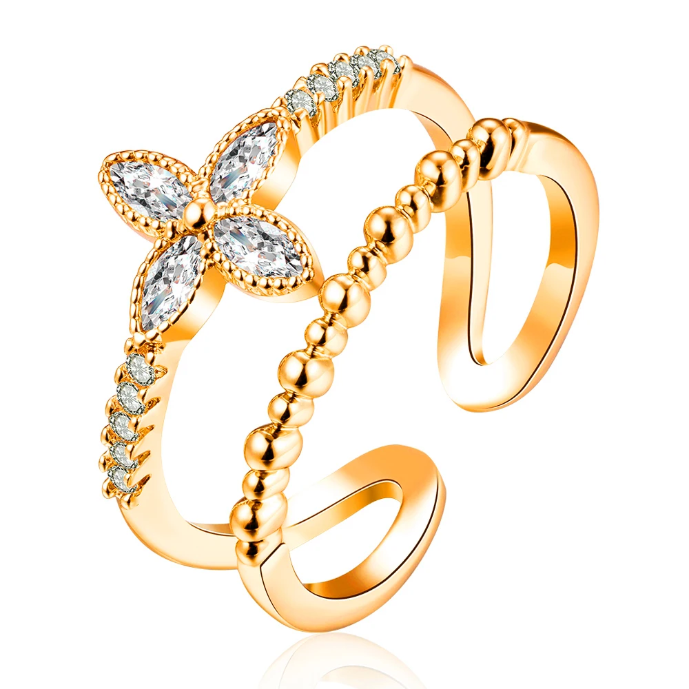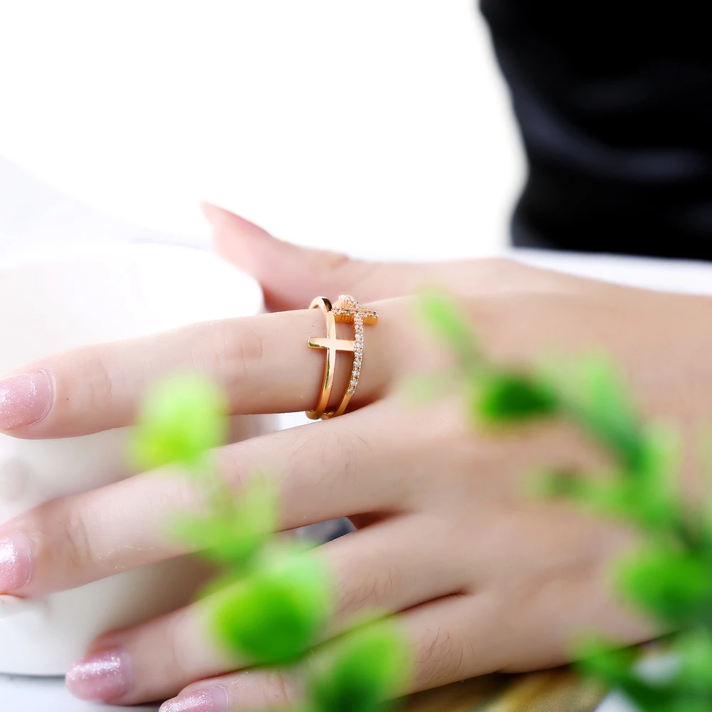 Fashion Hot Sale Classic Cross Gold color Crystal Jewelry Adjustable Rings For Women Girls Party Valentine’s Bague Bijoux Gifts
