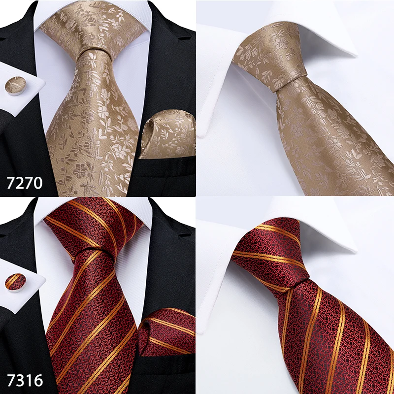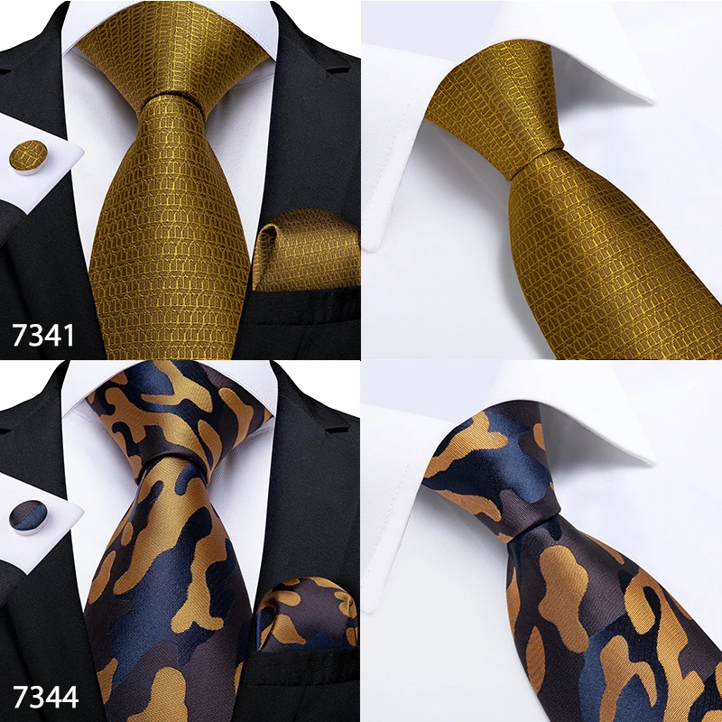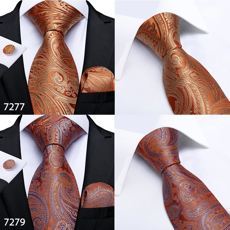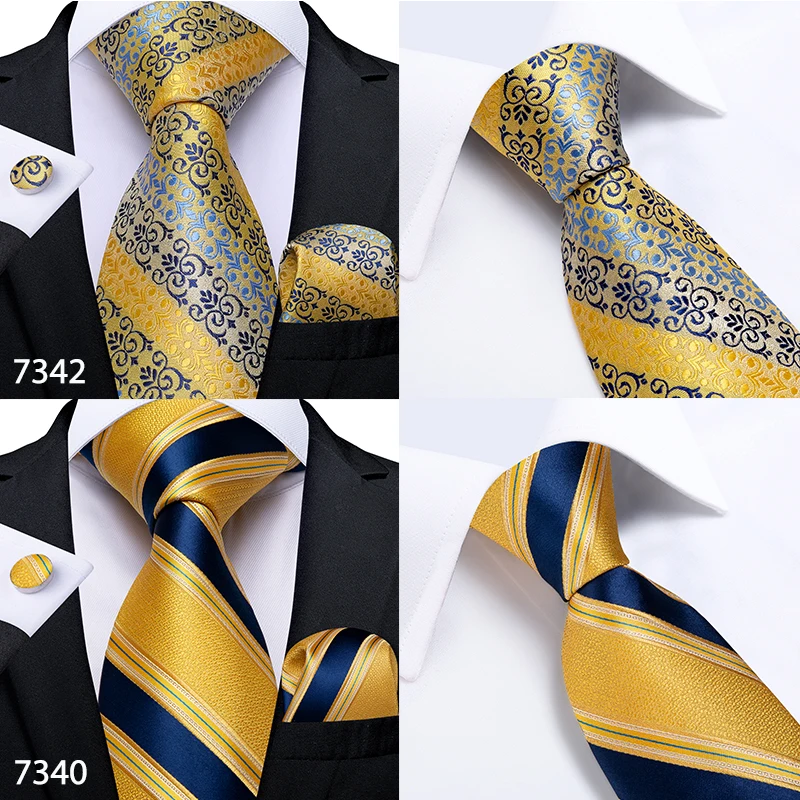 Fashion Men Tie Luxury Gold Blue Black Striped Paisley Silk Wedding Tie For Men DiBanGu Designer Hanky Cufflinks Gift Tie Set