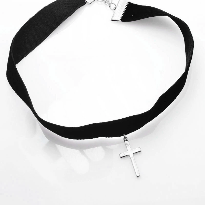 Name: Fashion Simple Black Flannelette Cross Pendant Necklace