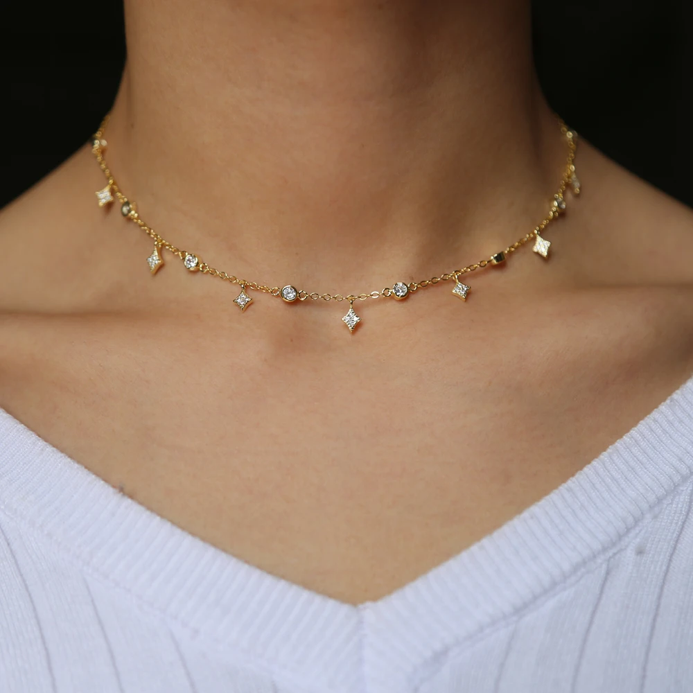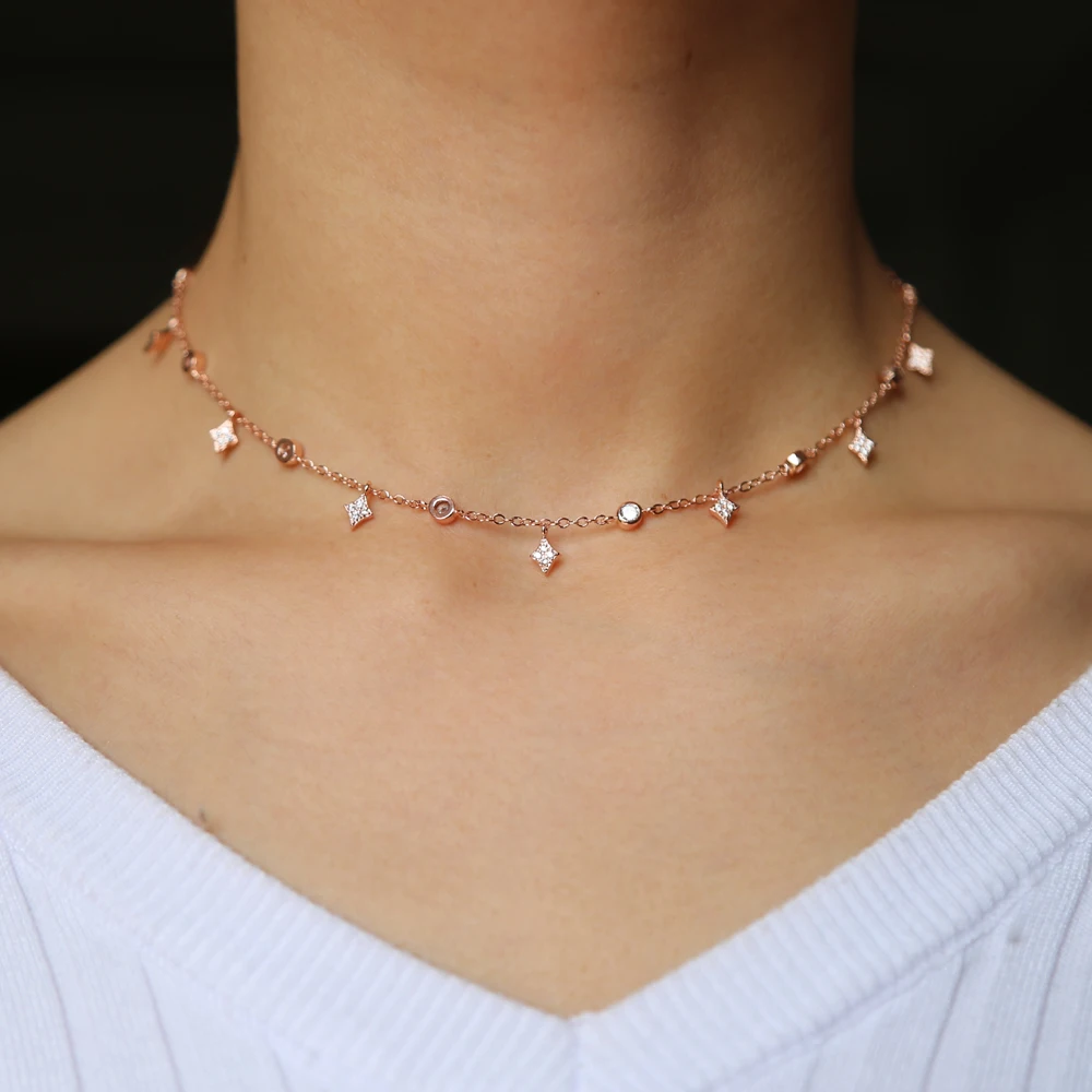 fashion Sterling silver color cz star charm wedding bridal gift jewelry charm choker minimal women fashion pendant necklaces