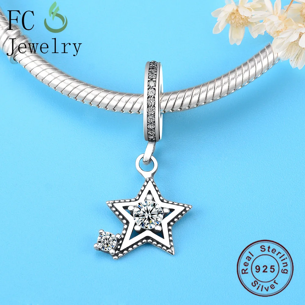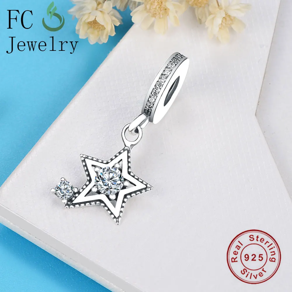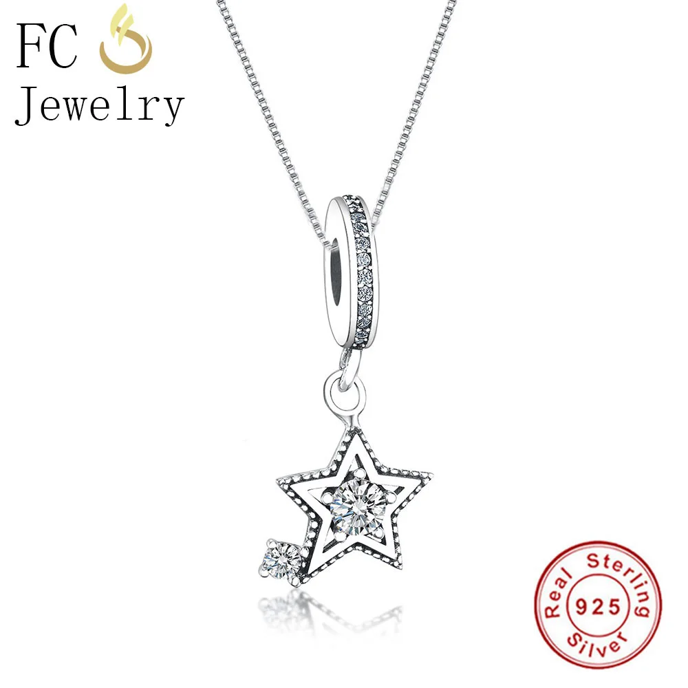 FC Jewelry 925 Sterling Silver Star Clear Color Cubic Zirconia Stone Charm Pendant Necklace For Women Chain Choker Trinket 2018