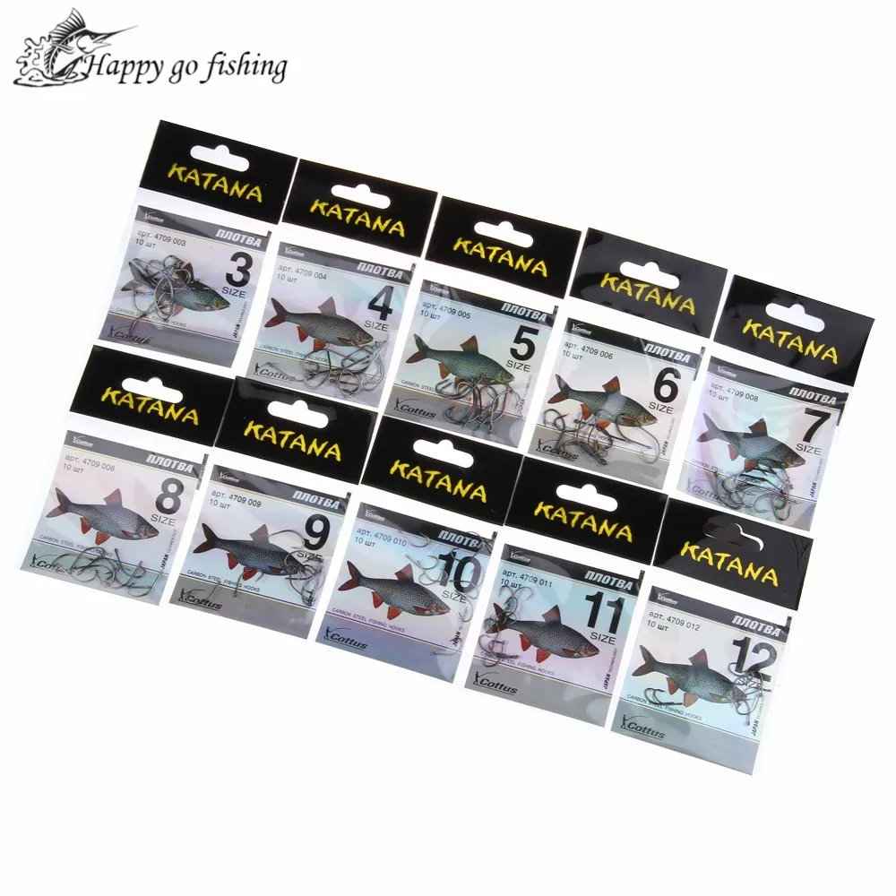 KATANA Cottus 50pcs/lot Size3-Size12 Carbon Steel Fishing Hook With Hole Barbed Pesca Carp Feeder Anzol Fishhook Fishing Tackle
