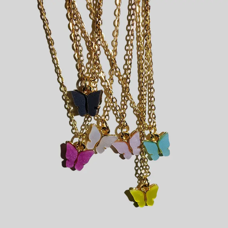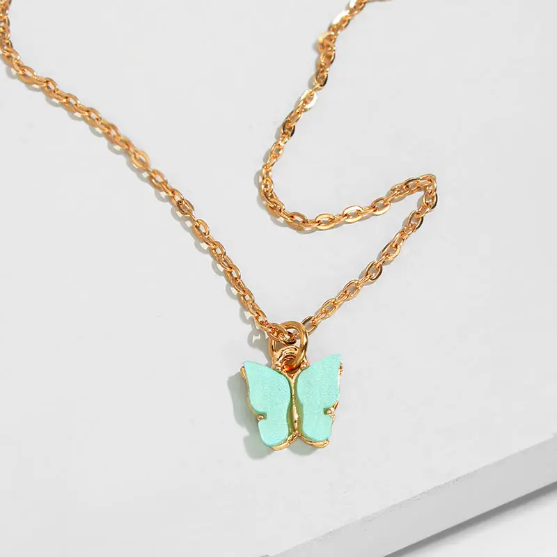 Flatfoosie Korean Cute Butterfly Necklace For Women Gold Color Long Chain Pendant Necklace Statement Fashion Charm Jewelry Gifts