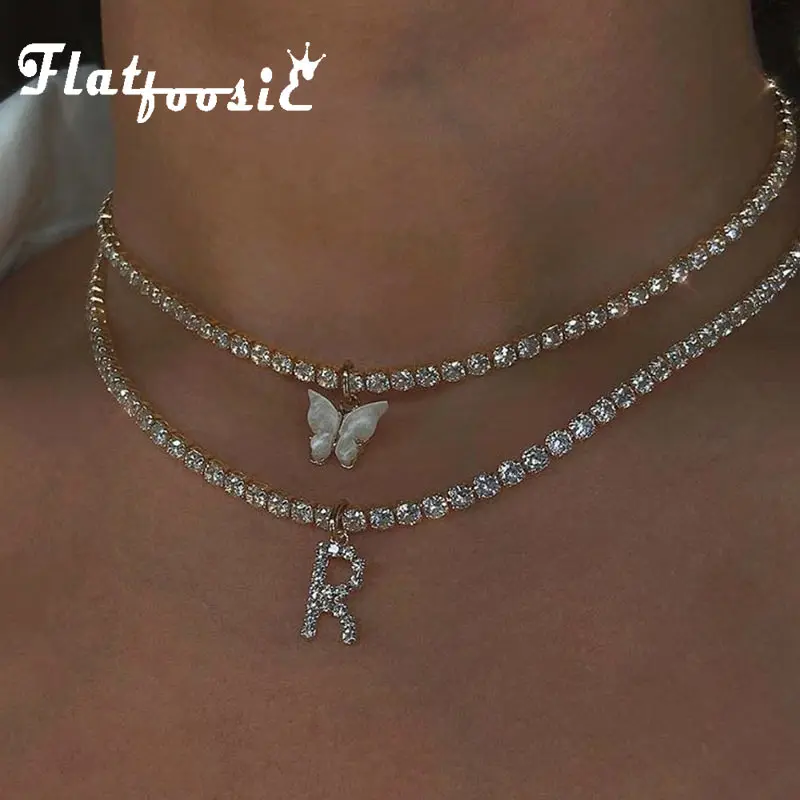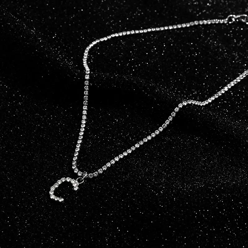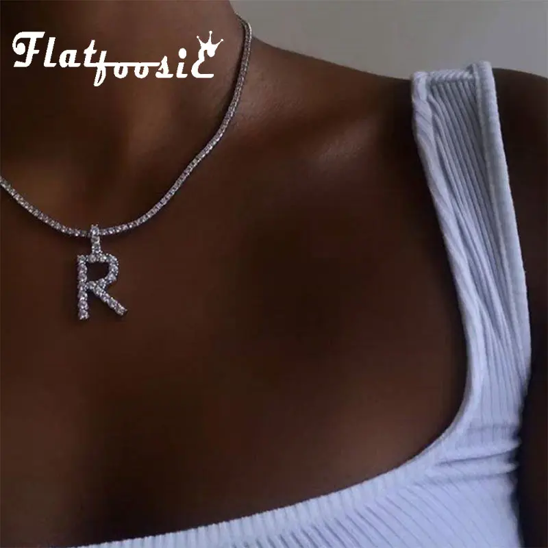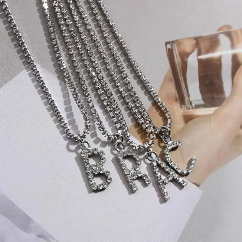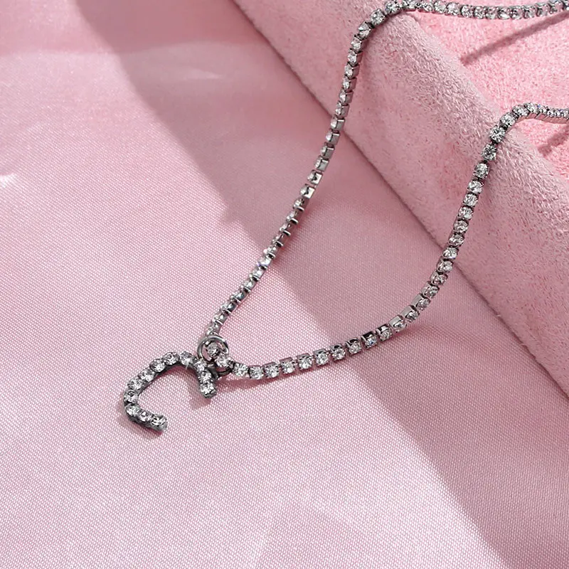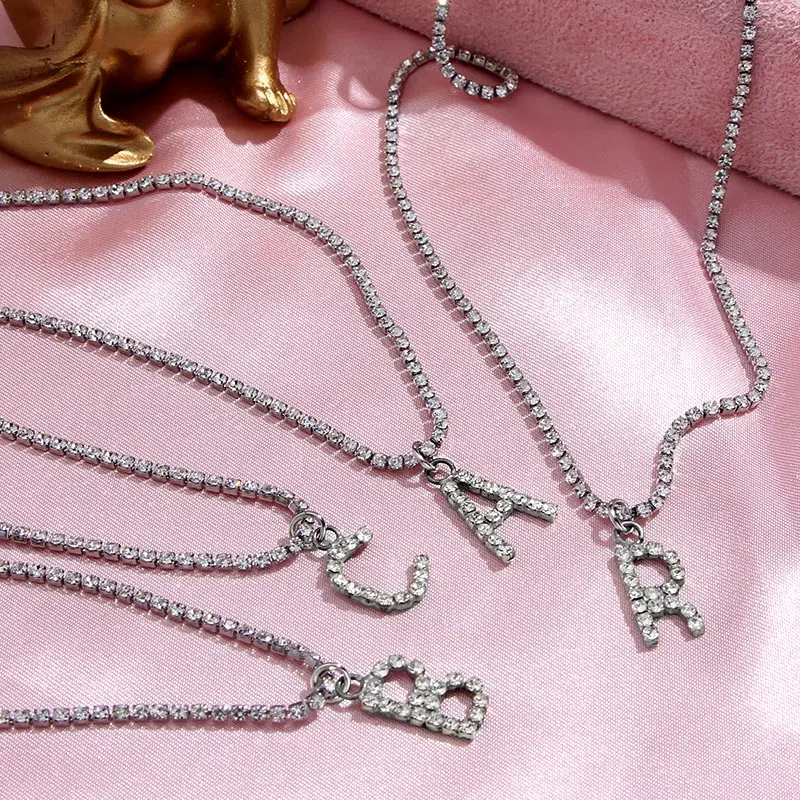 Flatfoosie New Fashion Crystal Letter Pendant Necklace for Women Bling Rhinestone Choker Necklace Exquisite Luxury Jewelry Gift