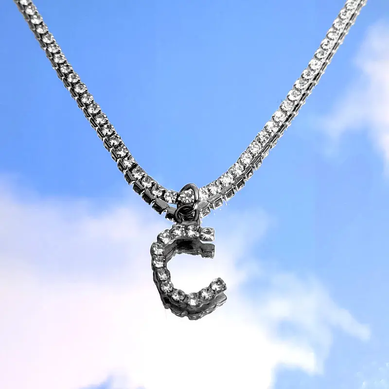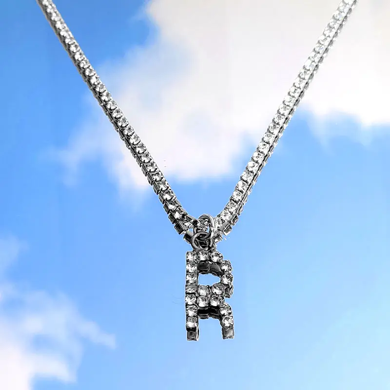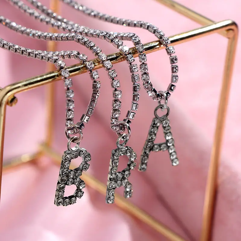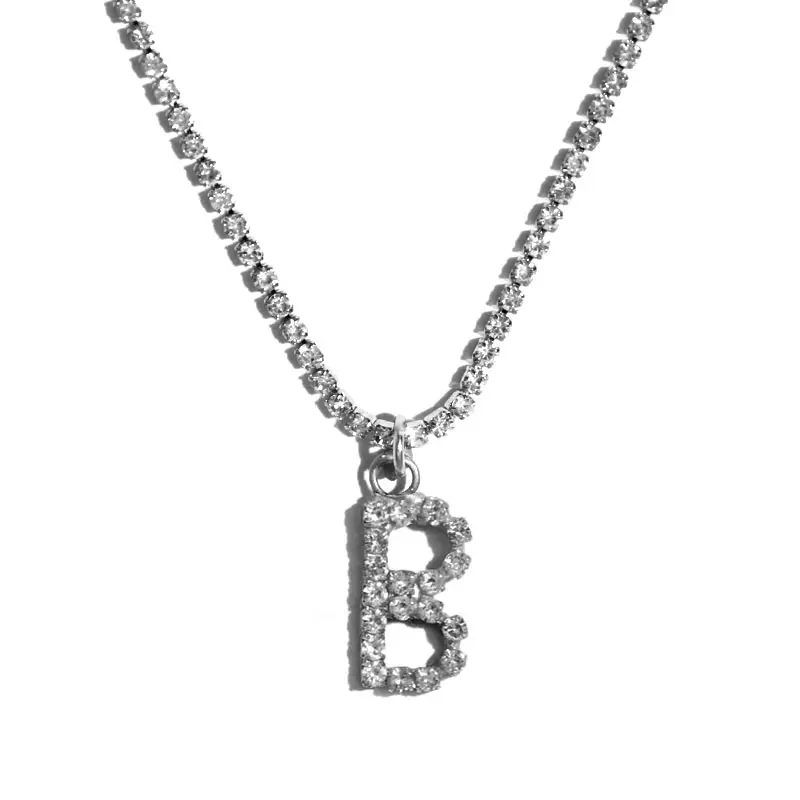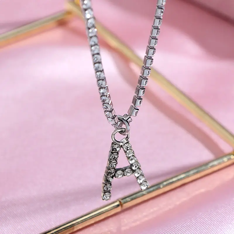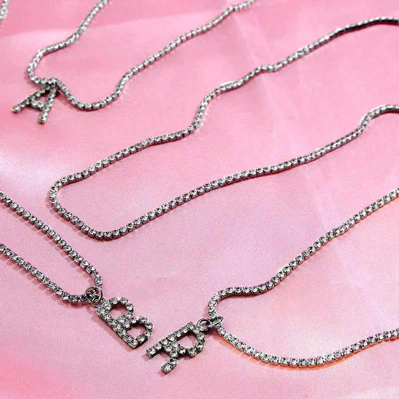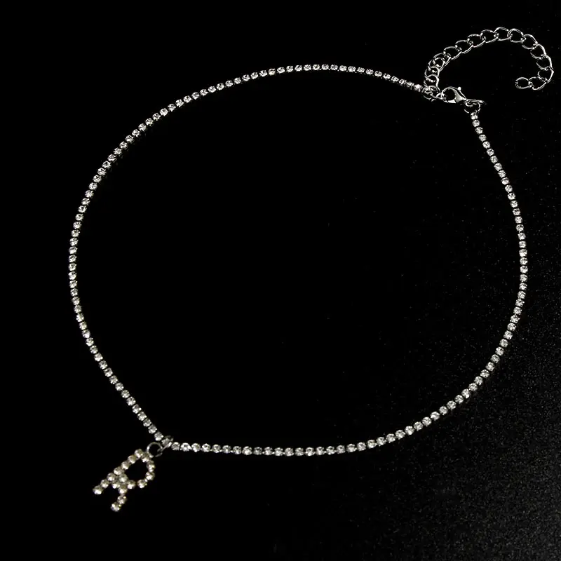Flatfoosie New Fashion Crystal Letter Pendant Necklace for Women Bling Rhinestone Choker Necklace Exquisite Luxury Jewelry Gift