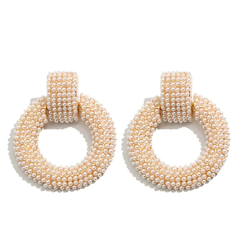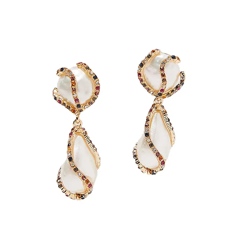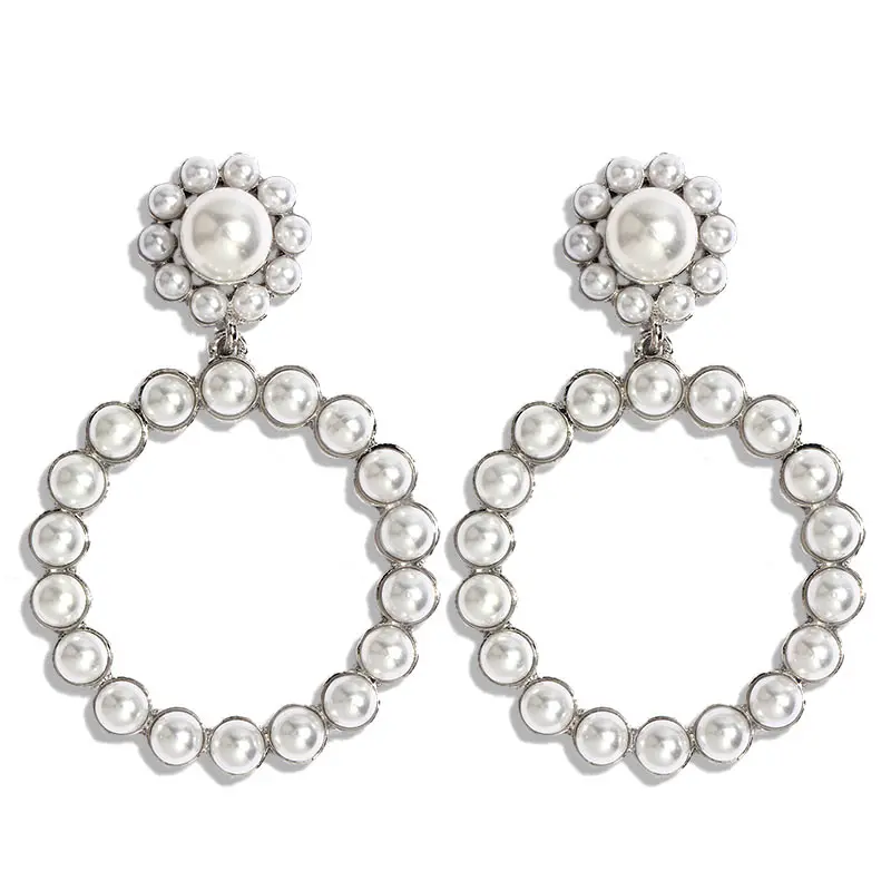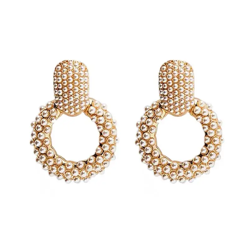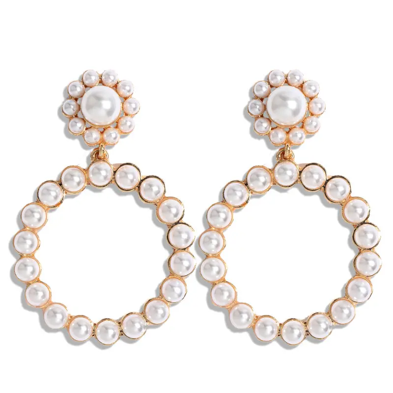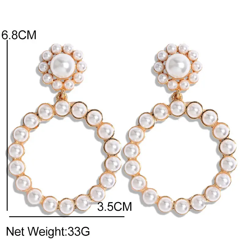 Flatfoosie New Simulated Pearl Drop Earrings For Women Geometric Round Shiny Colorful Crystal Statement Earrings Fashion Jewelry