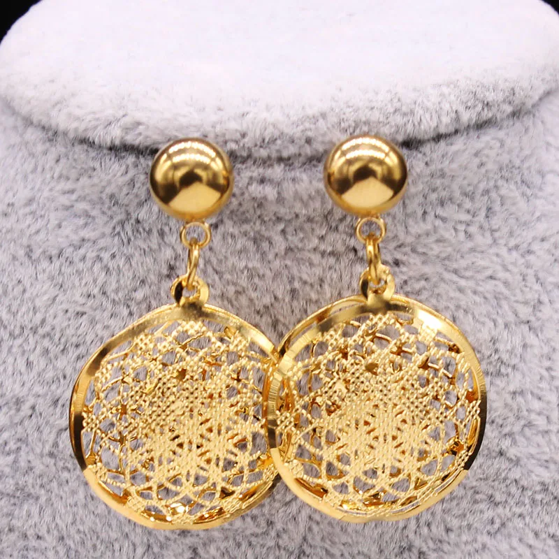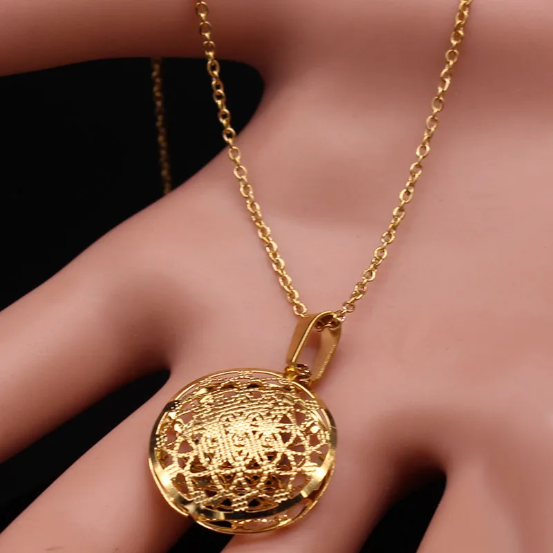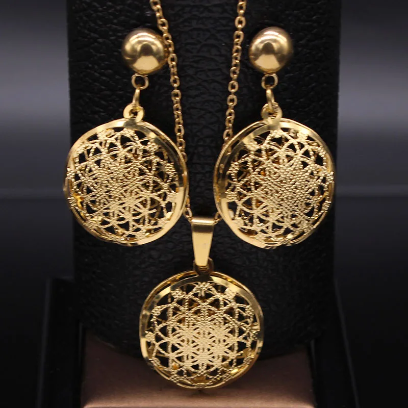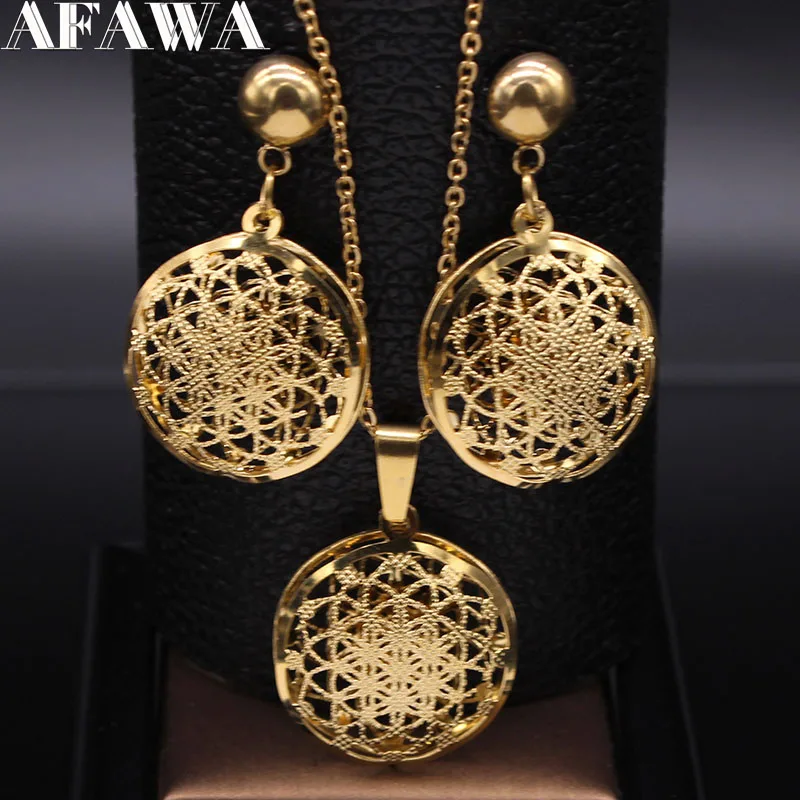 2019 Flower of Life Stainless Steel Jewelry Set Women Hollow Small Gold Color Necklace Earrings Set Jewelry set acero inoxidable
